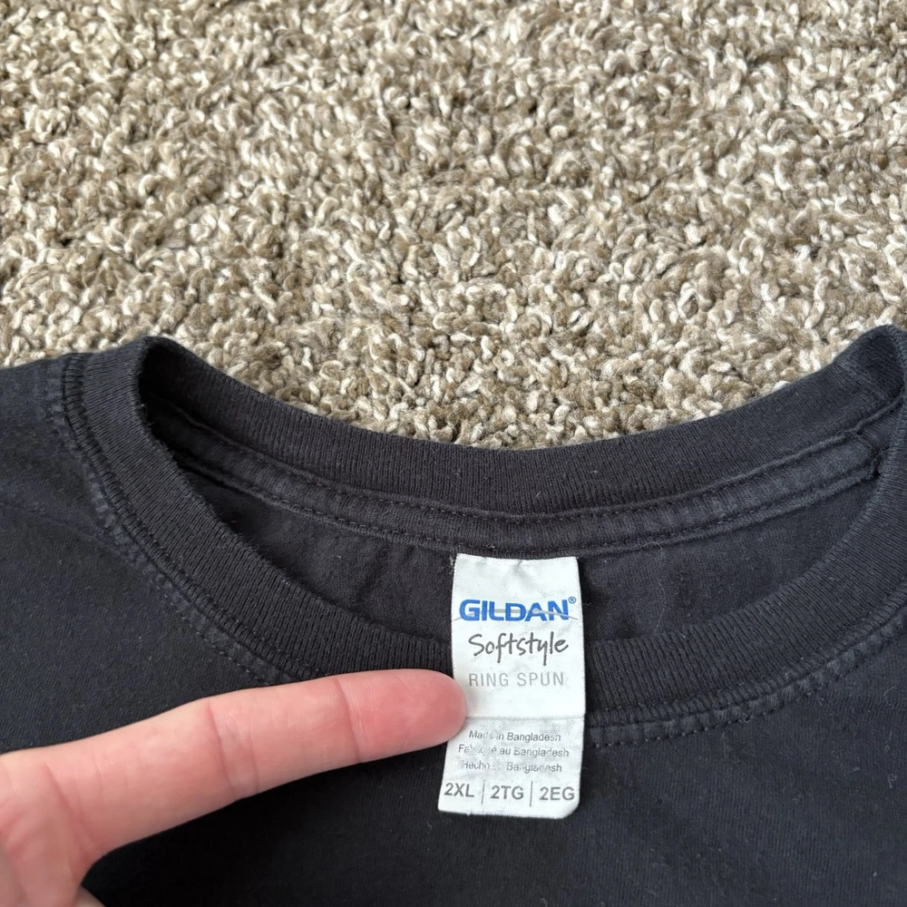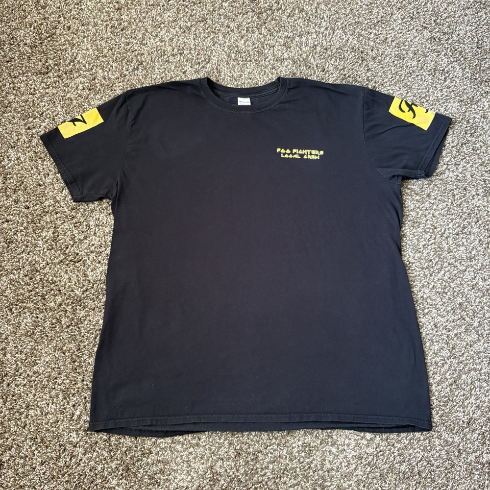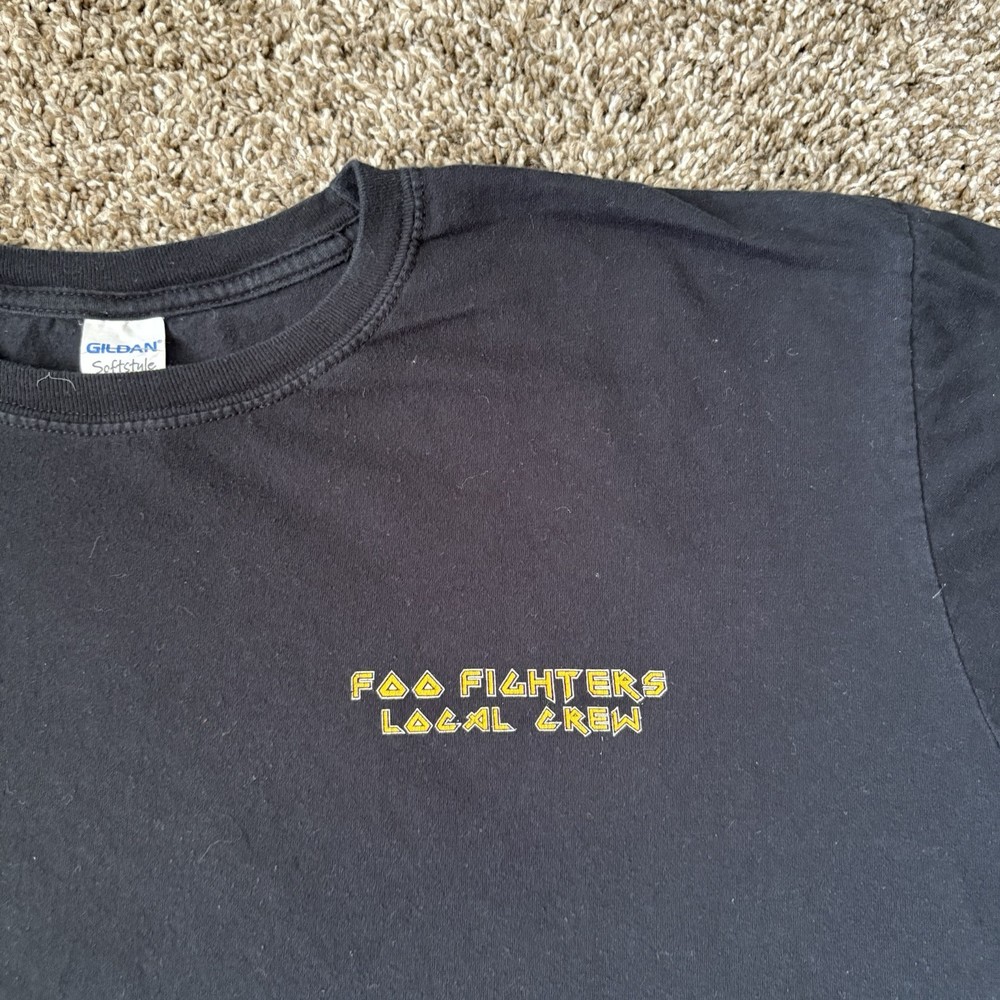 Capture the essence of classic rock nostalgia with the FOO FIGHTERS 2015 "SONIC HIGHWAYS WORLD TOUR" LOCAL CREW T-SHIRT. This rare collectible is a must-have for fans, featuring a striking graphic print that celebrates the band's iconic tour. The solid black backdrop makes the vibrant tour artwork pop, ensuring that this tee stands out in any collection. Crafted from comfortable cotton and designed with a traditional crew neck, this Gildan T-Shirt is a nod to music history. Embrace the spirit of the '60s to '90s with this regular-fit, short-sleeved piece that's perfect for fall. Whether you're headed to a concert or just expressing your rock 'n' roll vibe, this shirt is an effortless way to show off your music taste. Measurements: 24.5’x29.5’