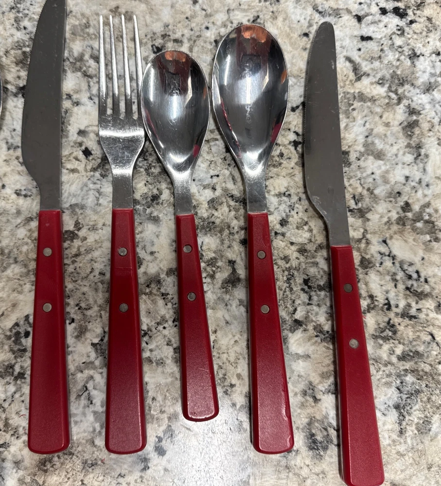 Elevate your dining experience with the Food Network Red Hibiscus Stainless Silverware Set. Crafted for versatility, this 12-piece collection is suitable for all occasions, whether a casual breakfast or a festive gathering. Each piece features a vibrant red hue paired with a classic mid-century modern design, adding a splash of color and sophistication to your table setting. The set includes forks, knives, and spoons, each meticulously designed with a solid handle pattern for comfortable handling. Made from durable stainless steel with plastic handles, this set promises longevity and easy maintenance with hand wash only care. Ideal for teens, adults, and kids, it's a stylish and practical choice for any household.
