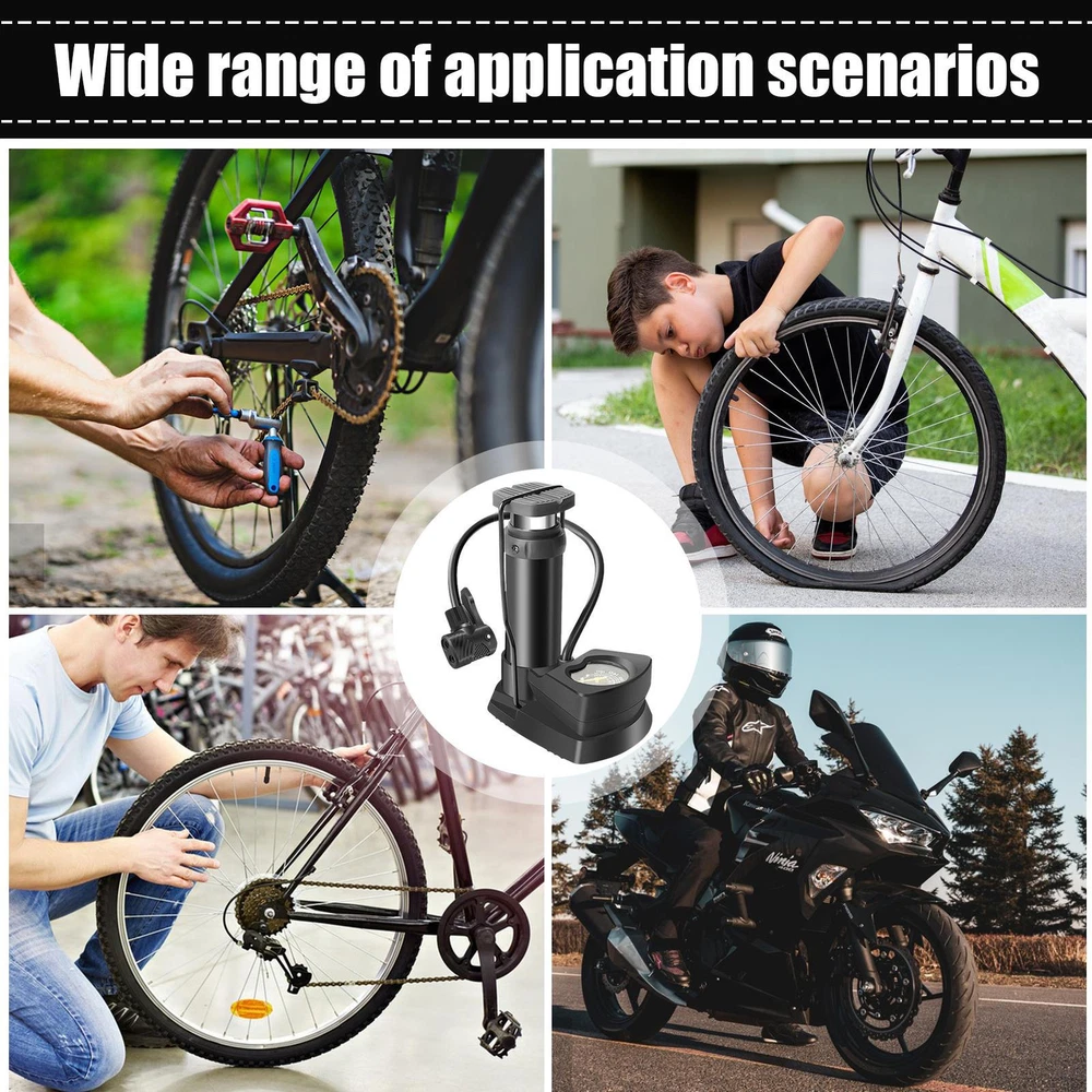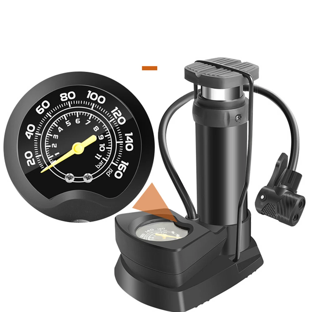 Quick Inflation: Enjoy faster and more efficient high-pressure pumping with our foot pump. The larger capacity and sealed piston rod allow for high voltage charging, making it easier than ever to inflate your items rapidly and get the vengeful power you need. Real-Time Pressure Measurement: Achieve real-time, accurate pressure readings up to 160psi with ease using our air foot pump's precise pointer design and display. Inflate tires quickly and confidently. Easy Carrying: Conveniently fits in your bag or car, this air foot pump is easy to carry and use anytime, anywhere. Its efficiency ensures you're often prepared for any situation outdoors. Compatibility Advantage: Our air foot pump accommodates British, American, and French valves, making pumping up fast and easy. Plus, its foldable design means it easily tucks away in any space without taking up too much room. Widely Used: Easily inflate tires from bikes to SUVs and sports balls to balloons with this versatile air foot pump, ensuring your road trips and outdoor activities go uninterrupted. With high voltage fast charging, accurate display, and the ability to use anytime, anywhere, this pump is perfect for your road bike. Plus, it's easy to place without taking up space. Specification: Product name: 1376 mini high-pressure foot pump Packaging size: about 18.5x14x9.5cm/7.28x5.51x3.74 inches Product weight: 432G Product color: black Product size: about 17.5x13.5x7.5cm/6.89x5.31x2.95 inches, Inflatable tube length: about 50cm/19.69 inches Material: ABS Packing List: 1pc * Foot Operated Air Pump Note: Due to different lighting and screen settings, the item color may be slightly different from the picture. Due to different manual measurements, please allow a 1-2cm difference in size.