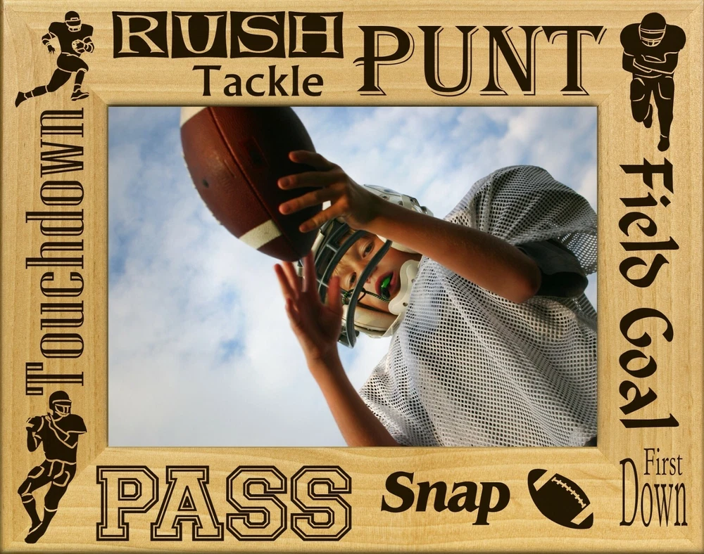 You are buying: Football Sayings Laser Engraved Wood Picture Frame Landscape (4 x 6) Picture Frame is made from Wood Picture Frame Measures 8.50 x 6.50 inches Picture Frame will hold a 4 x 6 Picture This item is Made in the USA Frames are new FREE SHIPPING to U.S. Customers Check out our ebay store where we have all the state magnets, plus lots of other items available. If you need larger quantities than what we have listed. Let us know and we will try to accommodate you.