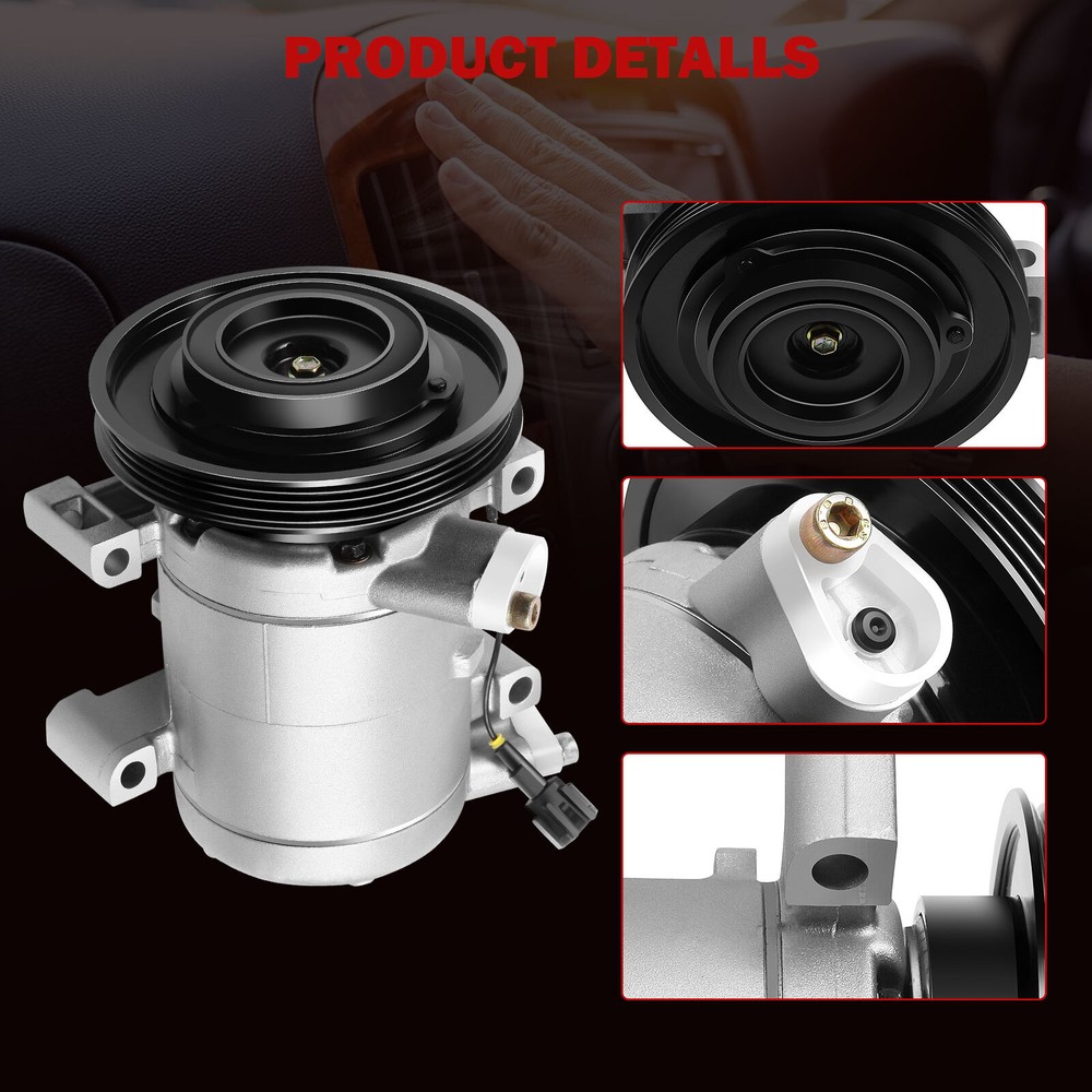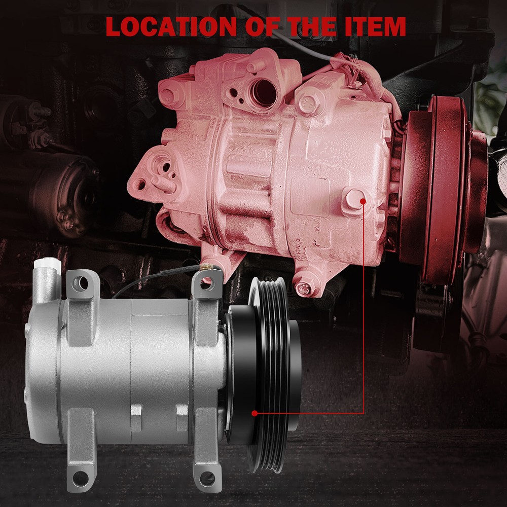 Compatibility should be checked and confirmed before placing order! Steps of confirming the compatibilities: Manage " My Garage ", and chose the right one when placing order; Or chose the " Year / Make / Model / Trim / Engine " of your vehicle on the compatible chart; Or Contact us if you have any question in confirming the compatibility, to make sure you will get the right and compatible item. Application: 99-04 Nissan Frontier 3.3L Package Content: 1 x AC Compressor W/Clutch Pay Attention: 1>Please refer to the picture and confirm it same as that you want,before paying for it. 2>please make sure the installation site is clean. Or, it will cause operating obstruction, even make the temperature of the compressor very high, and the belt on the clutch may melt. 3>Tested for noise, vibration, durability, vacuum decay, and pressure decay to ensure no leaks and longer life. 4>This item is with oil when sent to you, so there is no need to add oil when you use it the first time. You will get what you see in the picture showed. About US: We are committed to making the best auto-parts products and providing you with better services. So if you have any quesiton or problem, please fell free to contact us about that. Payment: Paypal and other methods which are acceptalbe by eBay. Shipping: All item will be packed with well condition in box or envelope, we make sure the item is in good protection, also please check all the item when you get the package. Product will be shipped within 2 business days after full payment is received and verified. All domestic orders will be shipped via USPS, UPS or FedEx from our US warehouse and usually arrives to your door in about 2-7 business days. Returns & Refund: 30-day free return will be provided. -Please note that the situations below will not be incounted: -Ordered by mistake. -Don't like it. -Duplicated orders. -Damaged product during installation. Contact Us: Any quesiton or problem, do contact us please. We are always online to answer. WARNING: Cancer and Reproductive Harm - www.P65Warnings.ca.gov. End Save for Web Slices
