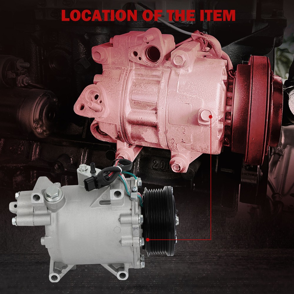 Compatibility should be checked and confirmed before placing order! Steps of confirming the compatibilities: Manage " My Garage ", and chose the right one when placing order; Or chose the " Year / Make / Model / Trim / Engine " of your vehicle on the compatible chart; Or Contact us if you have any question in confirming the compatibility, to make sure you will get the right and compatible item. Application: 06-10 Acura CSX 2.0L 06-11 Honda Civic Package Content: 1 x AC Compressor W/Clutch Pay Attention: 1>Please refer to the picture and confirm it same as that you want,before paying for it. 2>please make sure the installation site is clean. Or, it will cause operating obstruction, even make the temperature of the compressor very high, and the belt on the clutch may melt. 3>Tested for noise, vibration, durability, vacuum decay, and pressure decay to ensure no leaks and longer life. 4>This item is with oil when sent to you, so there is no need to add oil when you use it the first time. You will get what you see in the picture showed. About US: We are committed to making the best auto-parts products and providing you with better services. So if you have any quesiton or problem, please fell free to contact us about that. Payment: Paypal and other methods which are acceptalbe by eBay. Shipping: All item will be packed with well condition in box or envelope, we make sure the item is in good protection, also please check all the item when you get the package. Product will be shipped within 2 business days after full payment is received and verified. All domestic orders will be shipped via USPS, UPS or FedEx from our US warehouse and usually arrives to your door in about 2-7 business days. Returns & Refund: 30-day free return will be provided. -Please note that the situations below will not be incounted: -Ordered by mistake. -Don't like it. -Duplicated orders. -Damaged product during installation. Contact Us: Any quesiton or problem, do contact us please. We are always online to answer. WARNING: Cancer and Reproductive Harm - www.P65Warnings.ca.gov. End Save for Web Slices