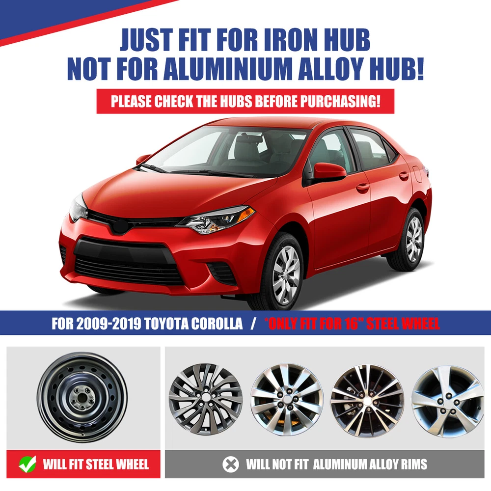 Head Lights Tail Lights Fog Lights Turn Signal Bumper Fender Flare Inner Fender Hubcaps Refrigerator Other Items for sale Head Lights Tail Lights Fog Lights Turn Signal Bumper Fender Flare Inner Fender Liners Portable Refrigerator For 2009-2019 Toyota Corolla 16" Hubcaps Wheel Rims Cover 09-14 Matrix Chrome Features: Please know that and check your wheel before purchase to ensure fitment.Only fit 2009-2019 Toyota Corolla 2009-2014 Matrix 16 Inch. Protect Your Wheels - Keep your vehicle looking sleek and new with these hubcaps that offer reliable protection against scratches, dings, and other types of damage. Durable - Made from high-quality ABS materials, these hubcaps are built to withstand the rigors of daily use, keep your vehicle looking great for years. Stylish - Upgrade the look of your car or truck with these sleek hubcaps to enhance the appearance of your vehicle. Easy to Install - Designed to fit most standard wheel size, these hubcaps can be quickly and easily snap on your wheels without the need for special tools, making them a great choice for busy vehicle owners. Fitments: Fit 2009-2019 Toyota Corolla Fit 2009-2014 Toyota Matrix Specification: Type: Wheel Hub Caps Color: chrome Compatible Wheel Diameter: 16 inch / R16 Features:Car Wash Safe, Easy to Install, No Tools Required Material: ABS Number in Pack: 4 Placement on Vehicle: Front, Left, Rear, Right Package Includes: 4* Wheel Cover Hubcaps Payment Shipping Return About us Contact us Payment Appreciated for the prompt payment, Contact us if bid by mistake, system open unpaid item automatically. Payment must be complete within 3 days from the date you purchase or after the end of auction. Items unpaid within 3 days of the auction end will be forfeited. We reserve the right of cancel the order and re-selling the items. Shipping All shipment will ship by UPS or USPS . All items will be ship within 1 working days , and we will ship out all orders as soon as possible after payment verified, please allow up to 1-4 business days for delivery. CANADA & International customers please note: your government might charge a duty tax (brokerage fees). We do not responsible for any custom duty or import tax. Why Choose the US Stock? 1. Us Local Shipping, No Extra Customs Cost to the US. 2. Fast Delivery: 1-4 Working days Delivery. 3. Best After-Sales Service!!! Return The buyer is responsible for all return shipping including a result of customer error or defective item. 1) If you received an incorrect, damaged, defective, or item not as described, contact us for full refund or replacement on our cost. 2) If you want to return the item, please contact us within 60 days after package received. Return products must also be in its original condition: including box, packaging and all other accessories. About us We are the best auto parts, we have been pursuing excellence, continuous exploration as the slogan, let customer satisfaction is our purpose! We adhere to the United States local delivery, one year warranty! Welcome! Contact us How Should You Contact us? Please Read The Item Description And See if The item Fits Your Vehicle Exactly. If You Found Any questions, Feel Free to email us by "Ask a question" Our Office Hours Are Monday - Friday 8:00am - 5:00pm PST / 11:00am - 8:000pm ET, We Do Not Answer Any E-Mails On Weekend, And We Will Reply All E-Mails In The Order It Was Receive. All E-Mail Take Us Around 24 Hours To Respond To Any E-Mail. We Are Close During The Weekends And We Do Not Answer Any E-Mails During That Time. On Feb 7, 2025 at 23:26:42 PST, seller added the following information: