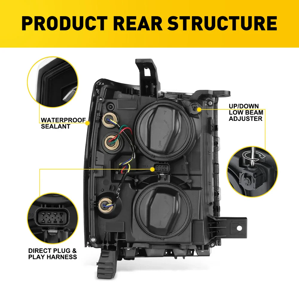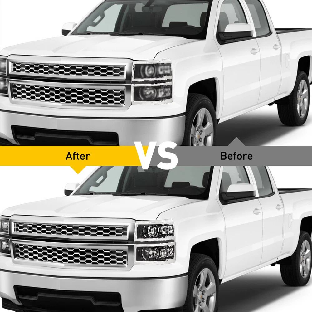 Fit for: 2014-2015 Chevy Silverado 1500 models only (Fit 2014 New Body style models only; Does NOT fit HD models) Specifications: OE number: 20933724, 20933725, 20933722, 20933723, 23172782, 23172783 GM2502389, GM2503389, GM2502395, GM2503395, GM2502410 Material: ABS+PC (ABS Plastic Housing/Polycarbonate lens) Appearance color: 1.Housing Color:Black 2.Lens Color:Clear 3.Reflector Color:White Note: Projector √(Include) DRL × (Not Include) Bulb × ( Not include) Features: *Easy to install: For 2014-2015 Silverado 1500 Housing Replacement Projector Headlamps Light EPU Fit for: 2014-2015 Chevy Silverado 1500 models only (Fit 2014 New Body style models only; Does NOT fit HD models) Specifications: OE number: 20933724, 20933725, 20933722, 20933723, 23172782, 23172783 GM2502389, GM2503389, GM2502395, GM2503395, GM2502410 Material: ABS+PC (ABS Plastic Housing/Polycarbonate lens) Appearance color: 1.Housing Color:Black 2.Lens Color:Clear 3.Reflector Color:White Note: Projector √(Include) DRL × (Not Include) Bulb × ( Not include) Features: *Easy to install: Direct replacement, drilling and cutting are not required. *Superior quality: Made of ABS and PC materials with toughness and heat resistance functions to ensure its long service life and durability. *Angle adjustment: Equipped with a headlamp Angle adjustment knob, you can adjust the best Angle of view through the knob. *Suggestion: 1.Please confirm the OE number before purchasing!!! 2.Professional installation is required!!! Packaging include: Headlights*2(Left+Right) Item Specifics Brand AUXITO Fitment Type Direct Replacement Manufacturer Warranty Yes Material ABS PC (ABS Plastic Housing/Polycarbonate lens) Bulbs Included No Type Headlight Assembly Placement on Vehicle Front, Right,Left,Driver Side & Passenger Side Beam Type Low Beam, High Beam Assembly Type Composite Specifics For Models With Factory Halogen Headlights Only OE/OEM Part Number 20933724,20933725,20933722,20933723,23172782,23172783 Other Part Number GM2502389,GM2503389,GM2502395,GM2503395,GM2502410 Interchange Part Number GM2502389,GM2503389,GM2502395,GM2503395,GM2502410 Superseded Part Number 20933724,20933725,20933722,20933723,23172782,23172783 Mounting Style Screws Headlight Style Headlight Style Factory, Projector Housing Color Black Reflector Color White Features Factory Headlights, OE-Certified, SAE-Certified, Sealed Assembly Lighting Technology Halogen Bulb Shape Code 9005 HB3 High / H1 Low Beam; Bulb Not Required Fitment For 2014-2015 Chevy Silverado 1500 models only Compatible/Replacement For 2014-2015 Chevy Silverado 1500 models only Turn Signal/Parking Light 7443A 7443 Note Does NOT fit HD models Payment 1. We can only accept payment from PayPal. 2. Please keep the consistency of Paypal address and ebay address. Shipping 1. All items will be shipped in 12 hours after receiving your payment . 2. We ship this item to US only via USPS first class mail. It usually takes 3-5 working days to deliver. Returns 1. We offer 30 days return policy. 2. Please contact us within 30 days from the date you receive your package if you have any questions with the products . 3. Refund will be sent after we got your returned package. 4. All returned items should be in the original packaging with tracking number. Contact Us We work from Monday - Saturday 9:00AM - 6:00PM, but we will reply once we get your message. There will be delay on response if you send message or E-Mail on Sunday. DESCRIPTION PAYMENT SHIPPING RETURN POLICY CONTACT US Shop Category Store Home Other Hot Item Universal Car Windshield Wiper Squirter Washer Nozzle Spray Jet Kit Fluid Hose T USD 9.99 1set Control Knob Speed Fan Heater A/C For Jeep Wrangler TJ 99-06 5011218AA USD 9.99 Rear Left or Right Outside Door Handle for 2010-2016 Toyota 4Runner Lexus GX460 USD 14.24 For 2002-2008 Dodge Chrysler Stereo Car Radio Wiring Harness Adapter USD 11.59 Door Latch Cables LH+RH Front For 2007-2013 Chevy Silverado 1500 2500 HD 3500 HD USD 17.99 New List Item For 2008-2012 Honda 2.4L Accord Upstream Downstream Oxygen O2 Sensor Replacement USD 38.99 Outside Door Handle For Colorado Chevy 2004-2012 Textured New Left Driver Rear USD 12.99 For 2002-2008 Dodge Ram 2500 1500 3500 Chrome 4 Door Handle + Tailgate Covers USD 24.99 FOR FD FUSION 2014 2013 2015 2016 2017 2018 2019 HOOD HINGE RIGHT & LEFT PAIR USD 32.99 10pcs 2-LED Marker Red Oval Side Truck Trailer Lights Clearance Light Waterproof USD 12.99 Excellent Delivery For 2014-2015 Silverado 1500 Housing Replacement Projector Headlamps Light EPU Fit for: 2014-2015 Chevy Silverado 1500 models only (Fit 2014 New Body style models only; Does NOT fit HD models) Specifications: OE number: 20933724, 20933725, 20933722, 20933723, 23172782, 23172783 GM2502389, GM2503389, GM2502395, GM2503395, GM2502410 Material: ABS+PC (ABS Plastic Housing/Polycarbonate lens) Appearance color: 1.Housing Color:Black 2.Lens Color:Clear 3.Reflector Color:White Note: Projector √(Include) DRL × (Not Include) Bulb × ( Not include) Features: *Easy to install: Direct replacement, drilling and cutting are not required. *Superior quality: Made of ABS and PC materials with toughness and heat resistance functions to ensure its long service life and durability. *Angle adjustment: Equipped with a headlamp Angle adjustment knob, you can adjust the best Angle of view through the knob. *Suggestion: 1.Please confirm the OE number before purchasing!!! 2.Professional installation is required!!! Packaging include: Headlights*2(Left+Right) Payment Shipping Returns Contact Us 1. We can only accept payment from PayPal. 2. Please keep the consistency of Paypal address and ebay address. 1. All items will be shipped in 12 hours after receiving your payment . 2. We ship this item to US only via USPS first class mail. It usually takes 3-5 working days to deliver. 1. We offer 30 days return policy. 2. Please contact us within 30 days from the date you receive your package if you have any questions with the products . 3. Ref