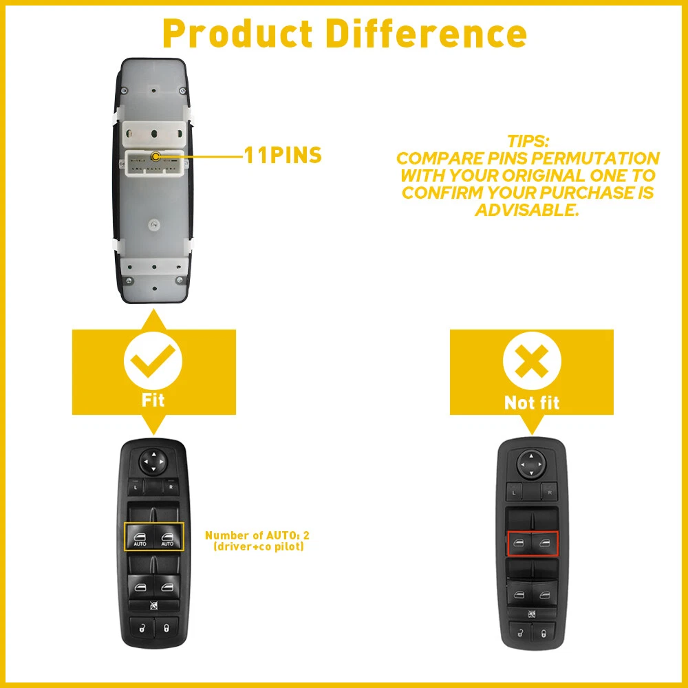 Fits for: 2014-2015 Dodge Durango 2014-2019 Jeep Grand Cherokee Specifications: OE:10099221, 68184802AA,68184802AB, 68184802AC 68030823AD, 68030823AC, 68030823AB,68030823AE Pin quantity: 11pin AUTO:2(driver side+passenger side) Features: *Better stability with longer service life. *This power window switch fits, functions and matches the appearance of the original one for a perfect replacement. * Direct replacement without other tools. * It has undergone simulation and endurance testing to ensure proper fit and performance. Packaging include: For 2014-2019 Jeep Grand Cherokee Master Power Window Switch Front Driver Side S Fits for: 2014-2015 Dodge Durango 2014-2019 Jeep Grand Cherokee Specifications: OE:10099221, 68184802AA,68184802AB, 68184802AC 68030823AD, 68030823AC, 68030823AB,68030823AE Pin quantity: 11pin AUTO:2(driver side+passenger side) Features: *Better stability with longer service life. *This power window switch fits, functions and matches the appearance of the original one for a perfect replacement. * Direct replacement without other tools. * It has undergone simulation and endurance testing to ensure proper fit and performance. Packaging include: Window control switch*1 Return Policy We offer 2 year warranty, if you meet quality problem, return and refund is acceptable. We offer 60 days for return and refund policies, please let us know and provide the photos or video, we will resend it or refund you. But we reject the return if the item damaged by the buyer’s operational errors. Contact Us Any problems or concerns, please contact us at first, we believe that communication and discussion is the best way to solve it. If you are happy with the transaction with us, leaving us an ALL-5-STAR positive feedback would be greatly appreciated. Tell your friends when you are satisfied and DO tell us when you are not ! Your encouragement will keep us moving forward. Item Specifics OE/OEM Part Number 68030823AB, 68030823AC, 68030823AD, 68030823AE, 68184802AA Interchange Part Number Dodge Charger years 2011 2012 2013 2014 2015 2016 Type Switch Assembly Other Part Descriptions Master Electric Power Window Switch Control Features Durable Warranty Lifetime Warranty Fitment Type Direct Replacement Manufacturer Part Number SD-00002869 Mounting Hardware Included No Material Plastic Keywords 2 Cluster Front Rear Left OEM Part Replacement Keywords 1 Electric Power Door Panel Lock Window Control To Control Window Modified Item No Placement Driver's Door Master Surface Finish OE Standard Return Period 60 Days Finish OE Standard Placement on Vehicle Door Brand AUXITO Manufacturer Warranty Lifetime UPC 812565033566 Color Black Modified Item No FAQ ♥ If you have a decoding problem or any other problems, please contact us first, we will help you with it. We will reply you within 24 hours in working days. I'm a new seller, thanks a lot for your trust and convince! I will serve you with all my heart. ♥ Q1: Will this bulb fit my vehicle? A: We can match almost any vehicle to one of our bulb sizes. eBay only lets us include some vehicle fitments per listing, but if your vehicle does not show up on the compatibility table at the top of our listings, welcome you to contact us for free consulation before purchasing a product. Q2: My item has not arrived, what's taking so long? A: Sometimes items take longer than expected, especially if it’s going far or to rural area. Check with your post office to see if your item has been held up. Sometimes Royal Mail will not update a tracking number until it has arrived at its destination. If your item still don't arrive after a few days, let us know so we can double check for you and help solve it asap. Q3: My bulbs won't fit, help! A: Special bulb holder may be required. See if you can take the holder from the stock bulb. If not, let us know. The bulb size may be wrong, double check the item you received with the item you ordered. Do you have an aftermarket lighting housing? These may not be perfectly fitted for aftermarket bulbs and will require some manual modifications. Q4: Neither side lighting up? Both sides flicker, hyper flash, or work inconsistantly. A:Check the light fuses, and then check the ballast plugs to insure correct installation. If this doesn't work, there may be a voltage problem with the vehicle. You probably just need a relay or capacitor. Even though some bulbs are builtin resistors, they may still need a decoder. Payment (1). We gladly accepts payment via PayPal, We will ship your item(s) within 24 hours. (2). Before payment, please keep the consistency of Paypal address and ebay address. (3). Quantity orders are welcome! Returns (1). We offer 60 days free return policy. Please contact us within 60 days from the date you receive your order if you have any issues with the product or want return. Refund will be send after we got your resend package. (2). All returned items should be in the original packaging , return tracking information should be provided . Contact us (1).Negative feedback will not help resolve any problems you have, please contact us via eBay messages before leaving negative feedback , our customer service will make best effort to help you with the issues. (2).We maintain high standards of excellenceand strive for 100% customer satisfaction! Feedback is very important to us. We request that you contact us immediately before you give us neutral or negative feedback, so that we can satisfactorily address your concerns. About us We're professional in car and motorcycle accessories, especially in LED bulbs. We have our own factory and R&D team. Our belief is to sell top quality items that fit your car and serve you with our heart. Anything please feel free to contact us! Our customer service is very responsibility. Come and follow us! DESCRIPTION PAYMENT SHIPPING RETURN POLICY CONTACT US Shop Category Store Home Other Hot Item BLACK ROOF TOP TRIM MOLDINGS FOR 2006 2007 2008 2009 2010 2011 2012 TOYOTA YARIS USD 17.99 2PCS O2 O
