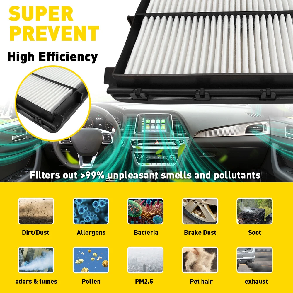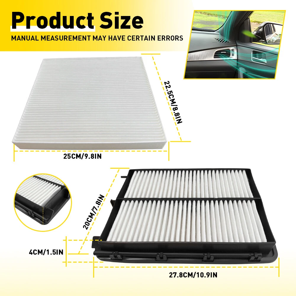 Auto Engine&Cabin Air Filter Combo Set Fits 2015-2019 Hyundai Sonata 2CH79-AP000 WHY YOU NEED CHANGE YOUR CAR'S AIR FILTER? DUST CLOGS FILTER: LOSS OF FILTRATION, POOR HVAC EFFECT PRODUCE ODOR: BREED BACTERIA,HARMFUL TO HEALTH Fit for: 2015-2019 Hyundai Sonata Specifications: OE Numbers: 28113-C1100, 2CH79-AP000 Filters out >99% unpleasant smells and pollutants:Dirt/Dust Allergens Bacteria Brake Dust Soot Pollen PM2.5 Pet hair odors & fumes exhaust Features: *Filtering Impurities For 2015 2016-2018 2019 HYUNDAI SONATA Premium Combo Set Air Filter+Cabin Filter Auto Engine&Cabin Air Filter Combo Set Fits 2015-2019 Hyundai Sonata 2CH79-AP000 WHY YOU NEED CHANGE YOUR CAR'S AIR FILTER? DUST CLOGS FILTER: LOSS OF FILTRATION, POOR HVAC EFFECT PRODUCE ODOR: BREED BACTERIA,HARMFUL TO HEALTH Fit for: 2015-2019 Hyundai Sonata Specifications: OE Numbers: 28113-C1100, 2CH79-AP000 Filters out >99% unpleasant smells and pollutants:Dirt/Dust Allergens Bacteria Brake Dust Soot Pollen PM2.5 Pet hair odors & fumes exhaust Features: *Filtering Impurities Effective filtration of impurities or gases ensures that the fluid or gas (e.g., fuel, oil, or air) entering the automobile engine or other important components is pure and free of impurities, making you and your passenger enjoy clean air. *Excellent Material The filter paper is made of materials capable of good adsorption, effectively filtering out impurities to ensure the operation of relevant components. *Easy Installation Simple installation with a direct replacement. Cutting or other complications are not required. *Proposals for Replacement To ensure that the engine and cabin air filter provide you with clean air, recommended replacement every 12 months, 12,000 miles or as specified by the vehicle manufacturer. *Warm Notice Please double-check the OE number and car models in the description to guarantee it fits your vehicle before ordering. Packaging Include: 1 x Cabin Air Filter, 1 x Engine Air Filter INSTALLATION PROCEDURE: STEP1:Open the cover plate of cabin air filter STEP2:Take out the old cabin air filter STEP3:Replace with new air filter STEP4:Restore the cover plate Item Specifics Brand AUXITO Type Engine and Cabin Air Filter Interchange Part Number 28113-C1100, 2CH79-AP000 OE/OEM Part Number 28113-C1100, 2CH79-AP000 Manufacturer Warranty 3 Years Manufacturer Part Number LX-SONATA-15-19 Features Easy Installation Country/Region of Manufacture China Placement on Vehicle Front Performance Part No Universal Fitment No Superseded Part Number 28113-C1100, 2CH79-AP000 Packaging Include 1 x Cabin Air Filter, 1 x Engine Air Filter Fitment FOR 2015-2019 Hyundai Sonata California Prop 65 Warning / Modified Item No Custom Bundle No Non-Domestic Product No Size As Photo Show Return Policy 60 Days Free Return Fitment Type Direct Replacement Number of Pieces 2 Other Part Number 28113-C1100, 2CH79-AP000 Material plastic FAQ ♥ If you have a decoding problem or any other problems, please contact us first, we will help you with it. We will reply you within 24 hours in working days. I'm a new seller, thanks a lot for your trust and convince! I will serve you with all my heart. ♥ Q1: Will this bulb fit my vehicle? A: We can match almost any vehicle to one of our bulb sizes. eBay only lets us include some vehicle fitments per listing, but if your vehicle does not show up on the compatibility table at the top of our listings, welcome you to contact us for free consulation before purchasing a product. Q2: My item has not arrived, what's taking so long? A: Sometimes items take longer than expected, especially if it’s going far or to rural area. Check with your post office to see if your item has been held up. Sometimes Royal Mail will not update a tracking number until it has arrived at its destination. If your item still don't arrive after a few days, let us know so we can double check for you and help solve it asap. Q3: My bulbs won't fit, help! A: Special bulb holder may be required. See if you can take the holder from the stock bulb. If not, let us know. The bulb size may be wrong, double check the item you received with the item you ordered. Do you have an aftermarket lighting housing? These may not be perfectly fitted for aftermarket bulbs and will require some manual modifications. Q4: Neither side lighting up? Both sides flicker, hyper flash, or work inconsistantly. A:Check the light fuses, and then check the ballast plugs to insure correct installation. If this doesn't work, there may be a voltage problem with the vehicle. You probably just need a relay or capacitor. Even though some bulbs are builtin resistors, they may still need a decoder. Pay & Ship (1). We gladly accepts payment via PayPal, We will ship your item(s) within 24 hours. (2). Before payment, please keep the consistency of Paypal address and ebay address. (3). Quantity orders are welcome! Returns (1). We offer 60 days free return policy. Please contact us within 60 days from the date you receive your order if you have any issues with the product or want return. Refund will be send after we got your resend package. (2). All returned items should be in the original packaging , return tracking information should be provided . Contact Us (1).Negative feedback will not help resolve any problems you have, please contact us via eBay messages before leaving negative feedback , our customer service will make best effort to help you with the issues. (2).We maintain high standards of excellenceand strive for 100% customer satisfaction! Feedback is very important to us. We request that you contact us immediately before you give us neutral or negative feedback, so that we can satisfactorily address your concerns. About us We're professional in car and motorcycle accessories, especially in LED bulbs. We have our own factory and R&D team. Our belief is to sell top quality items that fit your car and serve you with our heart. Anything please feel free to contact us! Our customer service is very respons