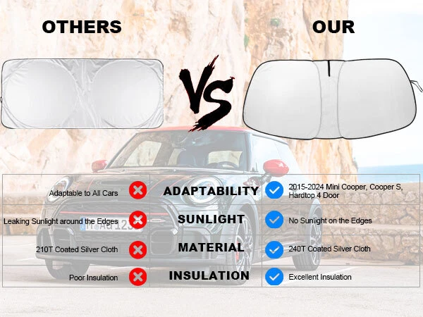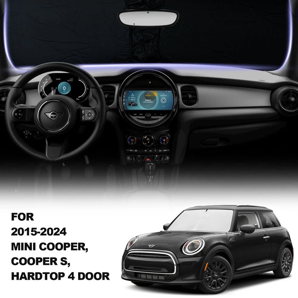 For 2015-2023 Mini Cooper Front Windshield Window Visor Sun Shade UV Block Cover Fitment For Mini Cooper, Cooper S, Hardtop 4 Door 2015-2023 Features Custom Fit : Windshield Shade Cover custom fit for Mini Cooper 2015-2023, Full covered your windshield,No Gap,Perfect fit. Double Thickness Material : Made of 210T Reflective Polyester, Sun Blocker is consist of both double reflective layers and double thermal insulating layers which can make shading and insulation more effective,Keeps your vehicle cool and protects against damage caused by hot sunlight. Air Condition Works Faster & Easier : Using less energy and gas instead of having to wait 15 minutes for your AC to cool off your car, the AC cools faster & easier. Saves your money while making your drive much more comfortable and enjoyable. Great Protection : With windscreen sun shade,it can protect car interior from harmful UV rays and heat that will fade dash and seats.Also when you travel by car or need a nap,our Custom fit Windshield Shades can block 99% sun shine and UV rays,give you and your family more protection. Easy to install & store : The foldable built-in elastic ring design allows you to prop the sunshade up in seconds with ease and fold-away storage making it convenient for daily use. Without falling off.Easy to twist, fold and store in the storage pouch. Specifications Product Name: Car sunshade Suitable for: Front Rear Windshield Material: Reflective Silver-Coated Nylon with foldable metal frame Color: Black + Silver Tone Net Weight: 180g Package Included 1 X Car Front Windshield Sunshade 1 X Sunshade Storage bag Payment We can accept payment of Paypal only. Payment should be made within 7 days after purchasing. (No payment orders eBay system will automatically open unpaid dispute, and this is not good to your account.) Shipping Item will be shipped out within 48 hours upon receipt of your cleared payment. We can not ship on Sundays and other public holidays. International Buyers Please Note: 1, Import duties, taxes and charges are not included in the item price or shipping charges. These charges are the buyer's responsibility. 2, Please check with your countrys customs office to determine what these additional costs will be prior to bidding/buying. Please make sure your address in paypal is correct. we will only follow your address listed in the Paypal payment for the shipment. Combine shipment is not allowed. If you want to combine all the items together, you should still pay for all of the shipping, insurance and handling fee! Returns We offer you 30 days return. The buyer is responsible for return shipping including a result of customer error or wrong item bought: 1) If you received an incorrect, damaged, defective, or item not as described, contact us for a partial/full refund or replacement on our cost. 2) If you want to return the item, please contact us within 60 days after package received. Return products must also be in its original condition: including box, packaging and all other accessories. Feedback 1.We are appreciated your business and to improve our customer service and our commitment to quality. 2.We will leave a positive feedback immediately after payment is received. We appreciate a positive feedback as much as you do. 3.If for some reason there is any issue with the purchase, please contact us prior to leaving feedback, and we will be glad to work with you to have it resolved. Contact Us We do appreciate your purchase from our store. If you are satisfied with the item as well as our service, please kindly leave us a Positive Feedback to help develop our business. Thank you in advance. Our office hours are MONDAY - FRIDAY 9:00PM - 18:00PM PST , we do not answer any E-mails or eBay messages on weekend. All E-mail or eBay message take us around 24 hours to respond. Thanks a lot. For 2015-2023 Mini Cooper Front Windshield Window Visor Sun Shade UV Block Cover Fitment For Mini Cooper, Cooper S, Hardtop 4 Door 2015-2023 Features Custom Fit : Windshield Shade Cover custom fit for Mini Cooper 2015-2023, Full covered your windshield,No Gap,Perfect fit. Double Thickness Material : Made of 210T Reflective Polyester, Sun Blocker is consist of both double reflective layers and double thermal insulating layers which can make shading and insulation more effective,Keeps your vehicle cool and protects against damage caused by hot sunlight. Air Condition Works Faster & Easier : Using less energy and gas instead of having to wait 15 minutes for your AC to cool off your car, the AC cools faster & easier. Saves your money while making your drive much more comfortable and enjoyable. Great Protection : With windscreen sun shade,it can protect car interior from harmful UV rays and heat that will fade dash and seats.Also when you travel by car or need a nap,our Custom fit Windshield Shades can block 99% sun shine and UV rays,give you and your family more protection. Easy to install & store : The foldable built-in elastic ring design allows you to prop the sunshade up in seconds with ease and fold-away storage making it convenient for daily use. Without falling off.Easy to twist, fold and store in the storage pouch. Specifications Product Name: Car sunshade Suitable for: Front Rear Windshield Material: Reflective Silver-Coated Nylon with foldable metal frame Color: Black + Silver Tone Net Weight: 180g Package Included 1 X Car Front Windshield Sunshade 1 X Sunshade Storage bag On Jan 10, 2025 at 01:38:54 PST, seller added the following information: