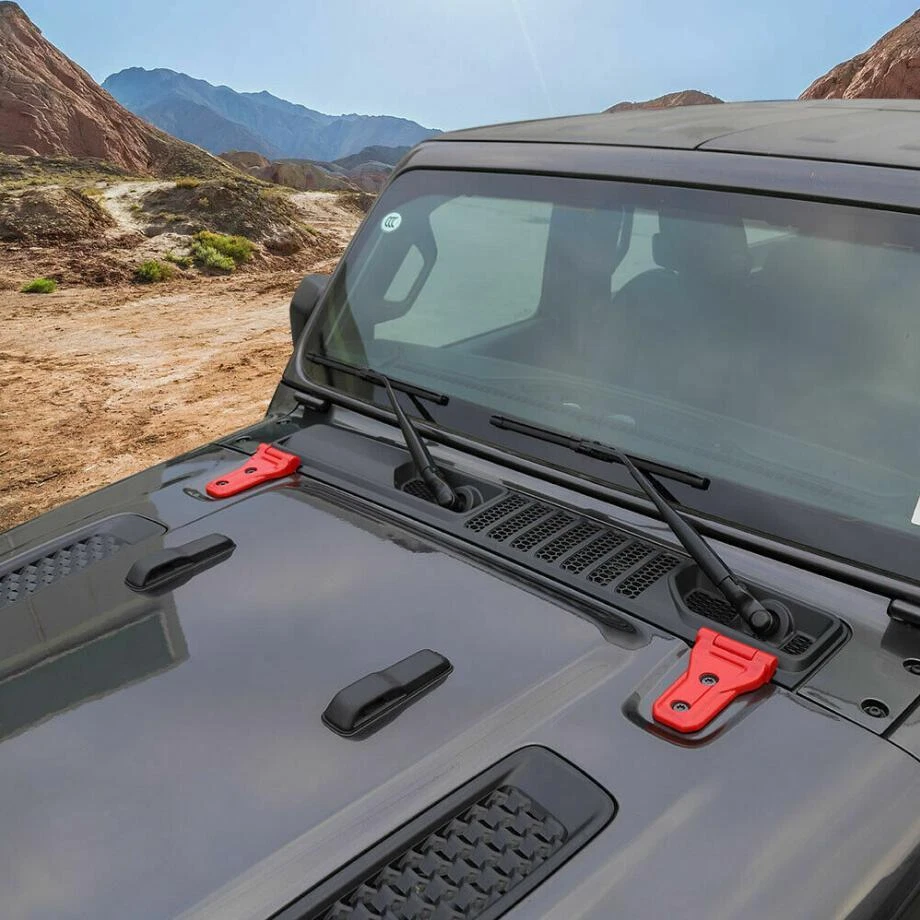 For 2018-2023 Jeep Wrangler JL ABS Red Look Car Engine Hood Hinge Cover Trim 4P