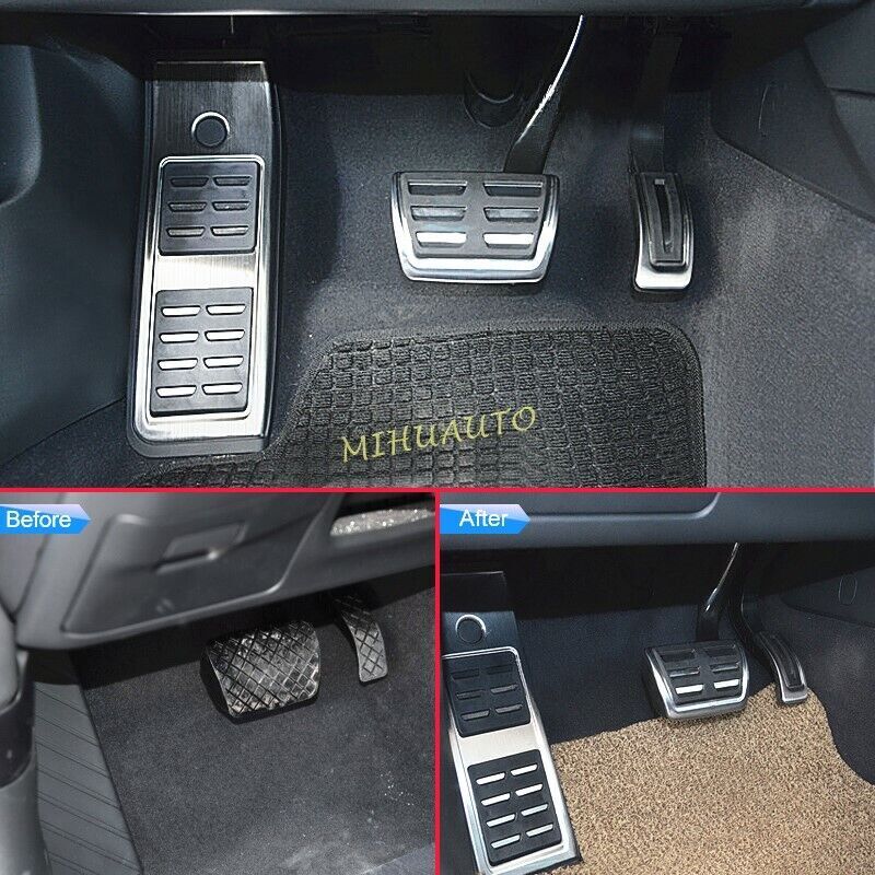 TRACKING NUMBER IS OFFERED Fitment 2017-2024 Audi A4 (B9) Sedan/Avant/Allroad 2018-2024 Audi A5 Sportback/Coupe/Cabriolet * ONLY FIT left hand drive. NOT FIT right hand drive Description Material Brushed stainless steel with TPE rubber, environmental protection and durable Antiskid Surface Design Prevent from slipping off. Improve the overall driving experience and security Upgraded Design Enhance the appearance of interior with our pedal kit Installation 1. Footrest: Unscrew the top screw and take off the factory dead pedal(plastic). Put the footrest cover on and fix it with the screw just got 2. Brake Pedal: Take off the factory rubber of the brake pedal by screwdriver, put on the brake pedal cover from bottom to top 3. Gas Pedal: There is no rubber on the gas pedal originally. Just put on the gas pedal cover directly from bottom to top * If it's hard to put them on, you can put them in hot water to make the rubber softer, or add some soap Package Included 1x footrest cover 1x brake pedal cover 1x gas pedal cover