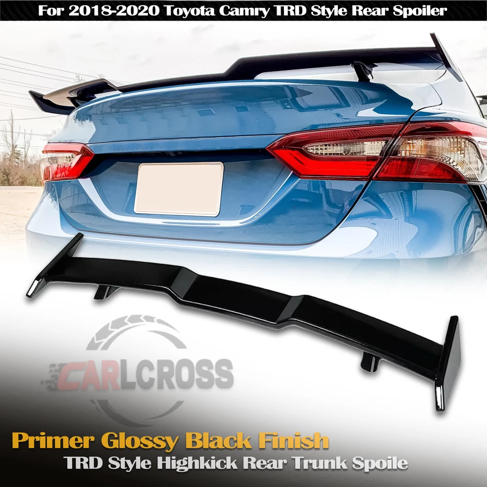 For 2018-2024 Toyota Camry JDM TRD Style Highkick Gloss Black Trunk Spoiler Descriptions: Set of 1 piece TRD Style Highkick Rear Trunk Spoile Color: Gloss Black Make & Model: Toyota Camry Year: 2018, 2019, 2020, 2021, 2022, 2023, 2024 Upgrade your car with a Sporty factory style appearance Product Features: -Made of high quality ABS hard plastic with gloss black painted -Painted Glossy Black Finish. Please Note This Is Aftermarket Paint, It's Generic Glossy Black Color. Not A Factory Paint Match Color. -Made Of High Quality Lightweight ABS Material. This is A Slim Blade Splitter Type of Spoiler. Its Thin and Aerodynamic Design Increases The Down-Force And Improves Handling. -Professional installation is highly recommended and Required Bolt-on installation. On Jan 7, 2025 at 08:58:28 PST, seller added the following information: