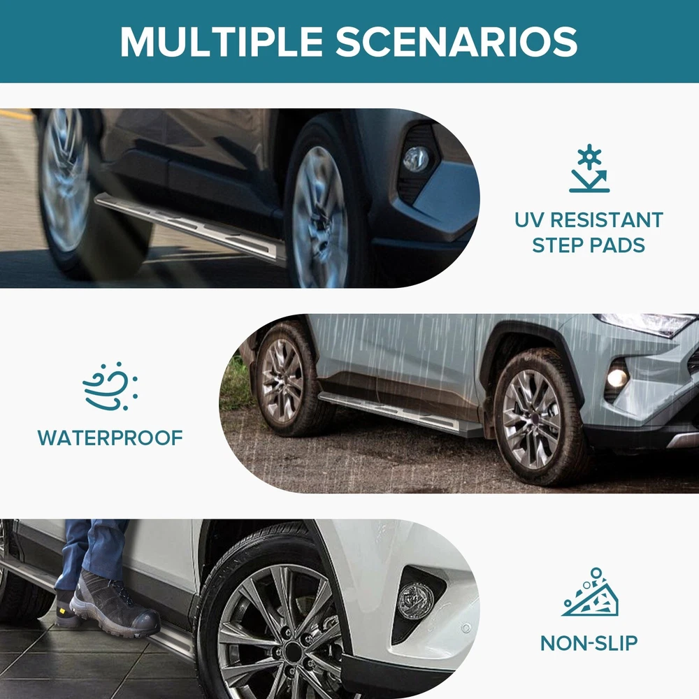 Specification Color: Black+silver Type: Step Nerf Bar Placement on Vehicle: Left, Right Fitment Type: Performance/Custom Material: Stainless Steel,ABS Shape: Rectangular Mounting Hardware Included: YES Package Size: 72.83*11.61*7.28 Package Weight: 28.88 Fitment 2019-2024 Toyota RAV4 Features & Benefits 1. High-Grade Construction: These running boards, also known as Side Steps, are made from high-grade Stainless Steel. This makes them lightweight yet extremely durable, perfect for long-term use. 2. Weather Resistant: Built tough, these running boards are highly resistant to corrosion. They perform well in all weather conditions, making them a reliable addition to your vehicle. 3. Easy Assembly and Removal: These running boards are designed for easy assembly and removal. This means you can easily install them when needed and remove them when not in use. 4. OEM Replacement with Quality Guarantee: These running boards serve as the perfect OEM replacement. They come with a quality guarantee, ensuring that you get the best value for your money. 5. Enhances Vehicle's Exterior: Apart from their functional benefits, these running boards also provide a great upgrade for your vehicle's exterior look. Please ensure to check the compatibility of these running boards with your vehicle before ordering. Feel free to contact us if you have any questions. On Nov 19, 2024 at 01:33:50 PST, seller added the following information: On Nov 22, 2024 at 02:00:25 PST, seller added the following information: