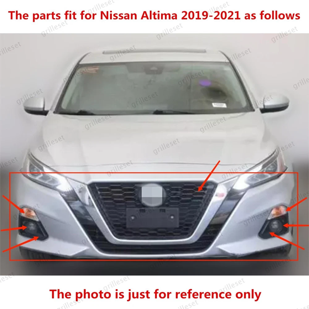 Fit for : 1 Set (13 PCS) Includes:(See more pictures for details) 1 Pc front upper black grille with chrome trim 1 Pc front tow hook hole cover 1 Pc front radiator upper support cover 1 Pc front bumper cover reinforcement 1 Pc front lower grille radiator shutter assembly without motor 2 Pcs front daytime running light with bulb 2 Pcs fog lights with bulb,switch,relay and harness 2 Pcs fog light bezels 2 Pcs front bumper brackets Item OE number : 62310-6CG1A;622A0-6CA0B;62078-6CA1B;62240-6CA0A;62330-6CA0C;26135-6CA0A;26130-6CA0A;62257-6CA0B;62256-6CA0B;26155-6CA0B;26150-6CA0B;62221-6CA0A;62220-6CA0A Installation : Perfect fit direct replacement, no modifications required. Installation manual not provided; we recommend professional installation. Item's-Features : Superior quality kit 100% brand new Made from high-quality materials Excellent replacement part, no modifications needed Other parts fit for