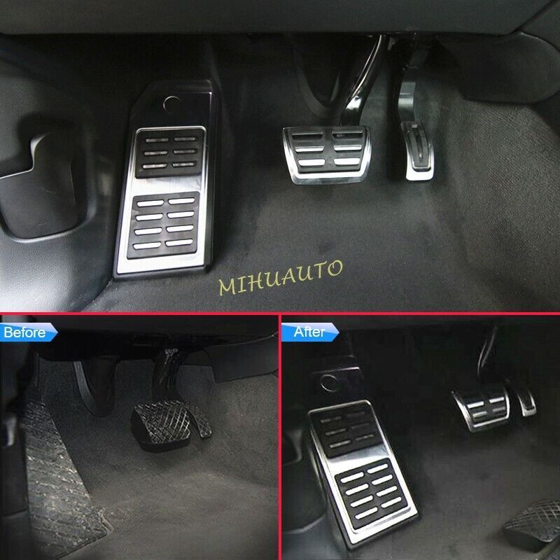 TRACKING NUMBER IS OFFERED Fitment 2017-2025 Audi Q7 2019-2025 Audi Q8 * ONLY FIT left hand drive. NOT FIT right hand drive Description Material Brushed stainless steel with TPE rubber, environmental protection and durable Antiskid Surface Design Prevent from slipping off. Improve the overall driving experience and security Upgraded Design Enhance the appearance of interior with our pedal kit Installation 1. Footrest: Unscrew the top screw and take off the factory dead pedal(plastic). Put the footrest cover on and fix it with the screw just got 2. Brake Pedal: Take off the factory rubber of the brake pedal by screwdriver, put on the brake pedal cover from bottom to top 3. Gas Pedal: There is no rubber on the gas pedal originally. Just put on the gas pedal cover directly from bottom to top * If it's hard to put them on, you can put them in hot water to make the rubber softer, or add some soap Package Included 1x footrest cover 1x brake pedal cover 1x gas pedal cover