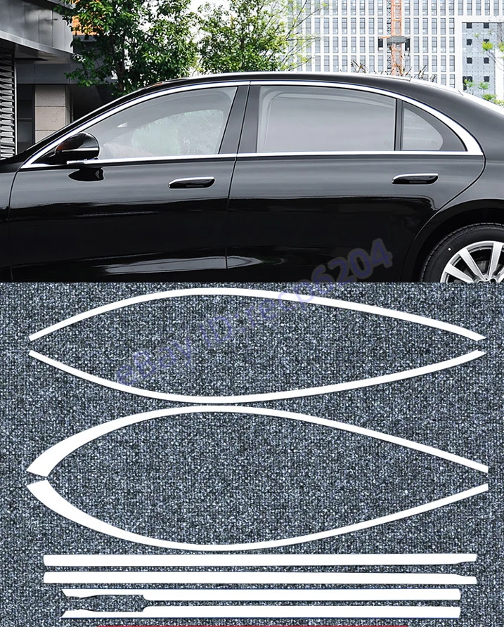 For Benz S-Class 2021-2024 Chrome Windows Strip Sill Molding Cover Trim Product Description For Benz S-Class 2021-2024 Item Specifications : Condition : 100% Brand New Color: Chrome Iclude:8PCS/ 1Set Material: Made of High Quality Stainless Steel Strict Factory QC Test ,High Quality Guarant Made in an ISO 9001 facility to ensure good quality Product Introduction: 100% Brand New. Made of high quality material, High quality guarantee. Provide a premium and stylish decor for your car,cover existing scratches and decorate your car. Made of use superb surface treatment technology for protection, anti-corrosion, fading protection and years of trouble-free use. Perfectly match with your original car. It can bring luxurious decoration upgrades to your car. If the picture appears green leaves are only decorative and are not included in the product itself. Installation Introduction : 1. Please use a cleaning towel to remove any dirt, dust and make sure the surface is thoroughly clean and completely dry. 2. Peel off the cover and tape the item on the surface of the vehicle. 3. Press the item for about one minute so that the item can be better stuck on the surface. 4. You can also use a hairdryer or heat gun to sufficiently heat the tape, this will allow the adhesive to better activate and bond to the corner. 5.If you not familar with DIY, please ask professional for help. Please check and confirm this things fits yours before buying. If you need more items of this model, please visit our store, thank you for your patronage! ! !Low price sales, limited quantity ! ! !