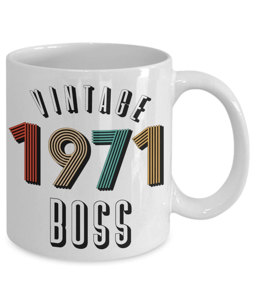 For Boss Mug Personalizedyear Vintage 1971 50th Birthday Year Anniversary Product Details.. This high quality 11oz. ceramic white mug has a premium hard coat that provides crisp and vibrant color reproduction sure to last for years. Perfect for all hot & cold beverages. The highest quality printing possible is used. It will never fade no matter how many times you wash it. Material: 100% Ceramic. Print both sides. Dishwasher and Microwave Safe. High Gloss + Premium White Finish. Printed in the U.S.A. Personalized & Custom. We support personalized and custom mug to add custom, when placing an order, you can add notes to the "order note" in shipping address section. Also you can contact us directly via message. Shipping Info. Ready to ship in 1 to 2 business days, All products are made-to-order and proudly printed in the United States. Shipped by USPS and DHL, You will receive your order in 5-7 days. Replace & Refund. All products are defective during shipping broken, chipped will be replaced free of charge. You are not satisfied with the product, we will refund 100% money to you. If any other issues arise, please do not hesitate to message, we would be more than happy to assist you.