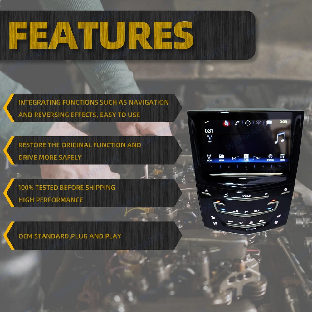 Features & details 【Manufacture Part Number】 23243166, 20867045, 22912608, 22935061, 22980207 【Package Includes】 1 PCS Touch Screen Nav Radio We recommend you find the Professional Installation. ( Installation instruction is not included. ) 【 Compatible with 】 2013-2019 Cadillac ATS 2015-2020 Cadillac Escalade 2013-2019 Cadillac SRX 2013-2020 Cadillac XTS 2013-2019 Cadillac CTS CTS-V 2013-2016 Cadillac ELR Note: This Item has both HEATED and COOLED seat options ( 2 buttons ) !! 【 Features 】 Color: Black Condition: 100% Brand New Fitment Type: Direct Replacement Fully tested and 100% functional 【Advantage 】 Completely unlocking without the need for CUE System Touch Screen Display dealer reprogramming (plug and play) to save large! User interface control, enable users to control and navigate through various user interfaces Provides an intuitive interactive interface for easy gaming, video playback and more NOTE: Please verify part number on the back of the unit before you purchase to assure compatibility. Please make sure your existing touch screen has the same style of chip as pictured. 【Service & Warra nty】 Purchase from WAHPARTS, enjoy 1 year no worries-warranty, whenever you met issue when installing or using, please contact us via eBay Message, and we will reply within 24 hours and help solve the problem. Stablize Reliability Exact match, Precision manufacturing Brand New Appearance, New Standard Quick installation, Within A Few Minutes OE NUMBER: 23243166, 20867045, 22912608, 22935061, 22980207 Package Includes: 1 Pcs Touch Screen Nav Radio Compatible with: 2013-2019 Cadillac ATS 2015-2020 Cadillac Escalade 2013-2019 Cadillac SRX 2013-2020 Cadillac XTS 2013-2019 Cadillac CTS CTS-V 2013-2016 Cadillac ELR Customer Question & Answers Q1: Will This Part Fit My Vehicle? We list all the compatiblity, if your vehicle does not show up on the compatibility table at the top of our listings, welcome you to contact us for free consulation before purchasing a product. Q2: Does they come with warranty? All of our product comes with 1-year warranty, but some times you need to pay the shipping fee. Q3: How to use it? If you don't know how to install this accessory, welcome to contact us, we will provide you with a video guide. Payment Shipping Warranty & Service Returns/Exchanges Contact us Payment Most of the payment methods are available, such as Paypal, Payoneer, Credit Card. Within 1 day of receiving your payment, we will start processing your order. Shipping All Items Will Be Ship Within 1working Days, and We Will Ship out All Orders As Soon As Possible After Payment Verified, Please Allow up to 1-6 Business Days for Delivery. Why Choose the Us Stock? 1. Us Local Shipping, No Extra Customs Cost. 2. Fast Delivery: 1-6 Working Days Delivery. Warranty & Service All the product in our store come with a 1-year-warranty. If there is a problem with the product you purchased within 1 year, please contact us, we will provide you with after-sale protection. Our job is not complete until each customer is satisfied! Receiving positive feedback is extremely important to us. We give all our buyers positive feedback as soon as payment is received Negative feedback and bad ratings do not solve the problem! If you contact us via eBay, we will be more than happy to work with you! Returns/Exchanges If you received an incorrect, damaged, defective, or item not as described , contact us for a partial/full refund or replacement on our costs. If we shipped you the wrong part, we pay for the return shipment and send you the correct part. If you ordered the wrong part, contact us for a return address and simply return it,give us a tracking number. We will send you the new item as soon as the returned package is received; If you simply don't want the part, ship it back and give us a tracking number. After we receive the item, we will refund the item price minus shipping costs. All returns must be done within 30 days after receiving the package. Parts must be new and unused in the original condition: including box, packaging and all other accessories,or we will charge you a partial costs. Contact us If you encounter any problems during purchase or use, please contact us via eBay message directly. On Nov 25, 2024 at 16:57:17 PST, seller added the following information: