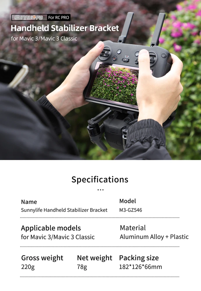Product Description For DJI Mavic 3 Classic Handheld Gimbal Photography RC PRO Remote Control Mavic 3 Stabilizer Features: Mavic 3 Classic/Mavic 3 seconds into a handheld gimbal camera, enjoy professional-grade increased stability. RC PRO remote control bracket with CNC finishing aluminum alloy, high strength and hardness, stable clamping is not easy to break. Unfold the tripod instantly self-timer, time-lapse shooting, stable shooting. Multi-angle adjustable, you can adjust the remote control to a comfortable perspective. Tailor-made, tight installation. Integrated with the camera body, the use of peace of mind. Specifications. Name: Sunnylife handheld camera device Model: M3-GZ546 Material: aluminum alloy + plastic Net weight: 78g Product List: 1*Stabilizer About Us Payment Shipping Terms Contact Us Welcome to our store! We are a professional worldwide wholesale company, with our own factory located in China. We supply many products including video game, health & beauty, phone accessories, computers accessories, camera & camcorder,car accessories, Clothing accessories, games, toys & hobbies, jewelry, antique & craftwork. High product quality,reasonable prices, excellent customer service and a reliable credit standing is our tenet. We accept PayPal only. Payment must be received in 7 business days of auction closing. Please leave note for your special request (e.g. Colors or Size) in PayPal when you pay the order. Any special request cannot be accepted after 24 hours of payment, because most of orders will be processed instantly and same day dispatched. Item will be shipped out within 48 hours upon receipt of your payment. The shipping time details, please read the shipping and delivery together with the price. We ship to your PayPal address. Please make sure your PayPal address is correct before you pay. Considering the cost of business and easy shipping, usually the item is packed in retail packaging. Country Shipping Time Working Days + Saturday + Sunday 5-7 8-15 16-20 21-25 26-30 >31 United States Rate(item arrived) 5.1% 50.1% 29.6% 10.5% 4.7% Refund United Kingdom Rate(item arrived) 9.9% 63.2% 19.1% 3.4% 4.4% Refund Australia Rate(item arrived) 21.4% 50.0% 14.3% 7.2% 7.1% Refund France Rate(item arrived) 10.5% 28.6% 43.8% 10.1% 7.0% Refund Germany Rate(item arrived) 11.1% 22.2% 30.3% 20.9% 15.5% Refund Canada Rate(item arrived) 0.0% 47.1% 31.4% 17.6% 3.9% Refund Spain Rate(item arrived) 3.7% 24.1% 48.2% 13.8% 10.2% Refund If this item is defective upon receipt, customer has up to 14 days from date of receipt for exchange of a new one.But buyers should be pay for the shipping charge for returning. We care about our valued customers, and are always willing to work things out. If you have any problems, please e-mail us immediately. If you have any questions, please feel free to send eBay message to us, our service specialists 24 Hours a Day, 7 Days a Week (maybe there is some delay in weekends). Our aim is to provide Top Level Customer Service, normally so we will try our best to solve any problem. Please DON'T leave negative or neutral feedback if you haven't received item in 30 days, because we have mentioned the shipping time repeatedly. About Us Welcome to our store! We are a professional worldwide wholesale company, with our own factory located in China. We supply many products including video game, health & beauty, phone accessories, computers accessories, camera & camcorder,car accessories, Clothing accessories, games, toys & hobbies, jewelry, antique & craftwork. High product quality,reasonable prices, excellent customer service and a reliable credit standing is our tenet. Payment We accept PayPal only. Payment must be received in 7 business days of auction closing. Please leave note for your special request (e.g. Colors or Size) in PayPal when you pay the order. Any special request cannot be accepted after 24 hours of payment, because most of orders will be processed instantly and same day dispatched. Shipping Item will be shipped out within 48 hours upon receipt of your payment. The shipping time details, please read the shipping and delivery together with the price. We ship to your PayPal address. Please make sure your PayPal address is correct before you pay. Considering the cost of business and easy shipping, usually the item is packed in retail packaging. Country Shipping Time Working Days + Saturday + Sunday 5-7 8-15 16-20 21-25 26-30 >31 United States Rate(item arrived) 5.1% 50.1% 29.6% 10.5% 4.7% Refund United Kingdom Rate(item arrived) 9.9% 63.2% 19.1% 3.4% 4.4% Refund Australia Rate(item arrived) 21.4% 50.0% 14.3% 7.2% 7.1% Refund France Rate(item arrived) 10.5% 28.6% 43.8% 10.1% 7.0% Refund Germany Rate(item arrived) 11.1% 22.2% 30.3% 20.9% 15.5% Refund Canada Rate(item arrived) 0.0% 47.1% 31.4% 17.6% 3.9% Refund Spain Rate(item arrived) 3.7% 24.1% 48.2% 13.8% 10.2% Refund Terms If this item is defective upon receipt, customer has up to 14 days from date of receipt for exchange of a new one.But buyers should be pay for the shipping charge for returning. We care about our valued customers, and are always willing to work things out. If you have any problems, please e-mail us immediately. Contact Us If you have any questions, please feel free to send eBay message to us, our service specialists 24 Hours a Day, 7 Days a Week (maybe there is some delay in weekends). Our aim is to provide Top Level Customer Service, normally so we will try our best to solve any problem. Please DON'T leave negative or neutral feedback if you haven't received item in 30 days, because we have mentioned the shipping time repeatedly. powered by