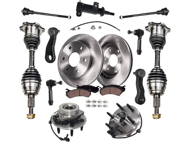 Parts Geek - For Escalade ESV Brake Pad Rotor Axle Wheel Hub Kit Detroit Axle 79745SNBM For Escalade ESV Brake Pad Rotor Axle Wheel Hub Kit Detroit Axle 79745SNBM Review Fitment Notes to Ensure Proper Fit Position: Front Condition: New Brand: Detroit Axle Notes: Suspension Kit -- 6-Lug Wheels; 4-Groove Pitman Arm; Fits Models with 12 inch (305mm) Front Rotor Axle Overall Length: 21 " Brake Pad Type: Ceramic Hub ABS Type: Sensor Wire Hub Lugs: 6 Hub Position: Front Features: Kit Includes: (2) Front CV Axle + (2) Front Wheel Hub and bearing + (4) Front Outer & Inner Tie Rod + (1) Pitman Arm + (1) Idler Arm + (1) Idler Arm Bracket + (2) Front Brake Rotor + (2) Front Ceramic Brake Pad Built under strict quality control standards; Tested for impact| wear and fatigue to ensure quality and durability; Manufactured in ISO9002 Certified facility Detroit Axle Suspension components are ready to meet the rigorous demands of today's foreign and domestic passenger cars| trucks| and SUVs 12 Month Warranty Fitment Notes: Vehicle Sub Model 2003-2006 Cadillac Escalade ESV Base Payment Information See our other listings Ensure Proper Fit To confirm that this part fits your vehicle, enter your vehicle's Year, Make, Model, Trim and Engine in the Compatibility Table. Also review the notes section in the compatibility chart for additional specifications about this part. About This Seller We have been offering automotive parts & supplies for sale since Parts Geek, LLC was formed in 2008. We pride ourselves in providing the best customer service on the Internet. Return Policy Return shipping paid by: Buyer Item must be returned within: 30 Days Refund will be given as: MoneyBack PLEASE DO NOT SEND RETURNS BACK WITHOUT A VALID RMA NUMBER. (We do not accept returns on opened or plugged in Electrical parts - No Exceptions) Core Policy Return shipping paid by: Buyer Item must be returned within: 30 Days Refund will be given as: PLEASE DO NOT SEND RETURNS BACK WITHOUT A VALID RMA NUMBER. (We do not accept returns on opened or plugged in Electrical parts - No Exceptions) California Proposition 65 WARNING: This product may contain chemicals known to the State of California to cause cancer and birth defects or other reproductive harm. For more information go to www.p65warnings.ca.gov
