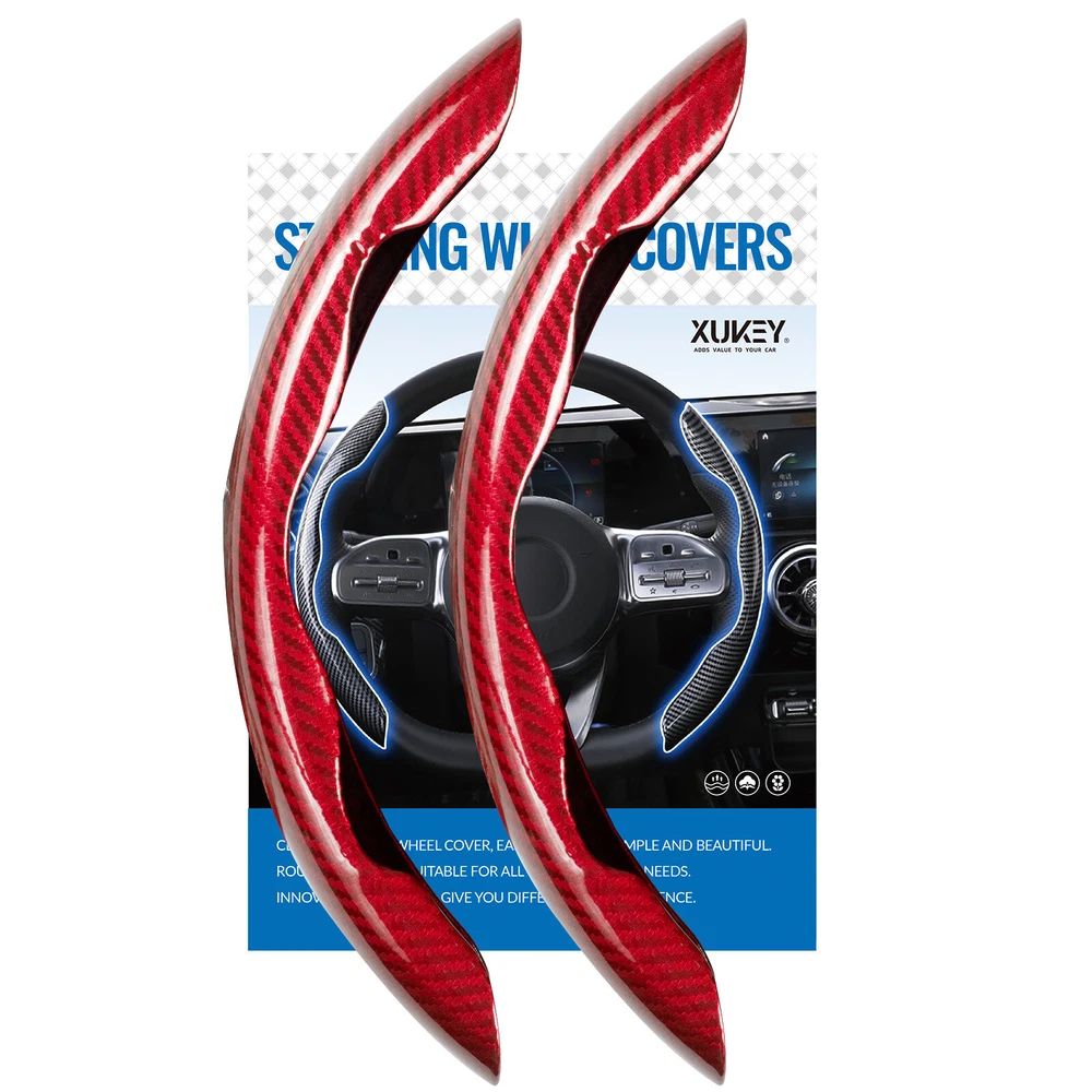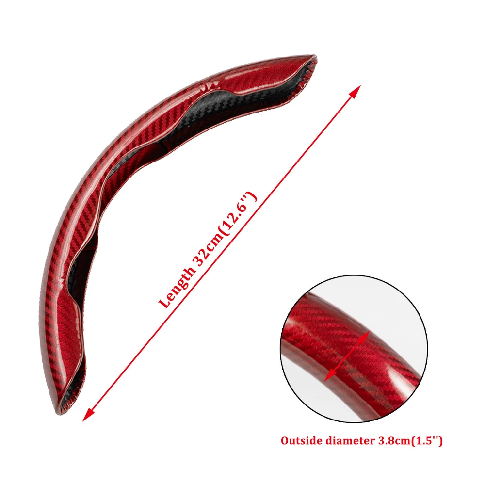 For Ford Car Steering Wheel Booster Cover Carbon Fiber Red Anti-slip Accessories Specification: Color: Carbon fiber red appearance Product material: ABS Compatibility: Suitable for most 38cm standard wheels, one left and one right, more convenient to use Vehicle position: left, right Quantity: 2 pieces Feature: -Novelty and high quality - Made of high-quality materials, durable and practical -A great helper for business trips and self-driving tours! - Enables drivers to steer more precisely when driving slowly or parking. -When turning, reduce the turning radius to help beginners and female drivers drive safely and conveniently, effectively solving driving fatigue. - Enables drivers to steer more precisely when driving slowly or parking. -Stylish and elegant design enhances car fashion sense. -Dynamic and sporty design for safer power steering! Supports steering wheel operation, convenient and smooth Excellent grip, ergonomic Easy to install/fits most cars Easy to install: The two-step installation and removal process is very quick. No tools required, no installation screws required. Package Included: 1 pair car steering wheel covers