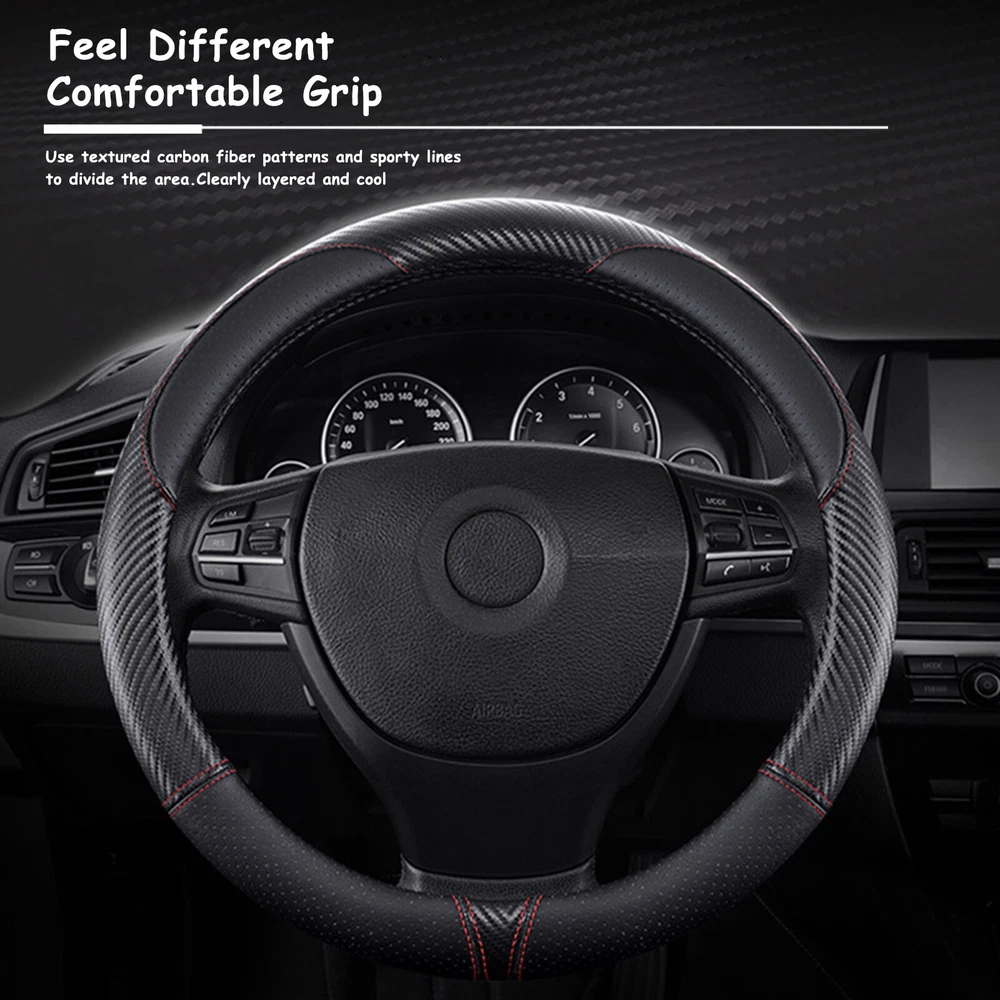 For Ford Car Steering Wheel Cover Carbon Black Leather Anti-slip Accessories; Features : --Anti-slip inner ring & perforated leather --More suitable for the original steering wheel. --Four Seasons General. --Feel comfortable, anti-skid and wear-resistant. --A perfect coat for your steering wheel . Specifications : Size: 38cm(15inch) Fitment: for Ford Steering Wheels with an Outer Diameter of 37~38 cm(14.5" to 15") Color: black Material: Carbon Fiber & Faux Leather Package contents : 1 x Steering Wheel Cover We accept Paypal and majoy credit cards payment When you place an order, please choose a shipping method and pay for the order including the shipping fee within 48 hours. And please make sure your current address correct after your payment within 1-2 days! About Shipping 1. Receiving time = Processing time + Shipping time 2. Processing Time: Around 1-3 Days 3. Shipping Time: 15-26 Days By Air Mail 3-10 Working Days By Express We do not guarantee delivery time on all international shipments due to differences in customs clearing times in individual countries, which may affect how quickly your product is inspected! Important Notice >Transit Time Is Best Estimated But NOT Guaranteed As Transit Time Varies >Orders may be subject to import taxes, customs duties and fees levied by the destination country.Additional charges for customs clearance must be fulfilled by the recipient; We no control over these charges, nor can we predict what they may be. 100% Customer Satisfaction Is Our Top Priority For Any Reasons You Are Not Satisfied With The Products Within 30 Days Of Purchase, Return Or Exchange Can Be Issued, Customers Are Responsible For The Return Shipping Cost And Subsequent Replacement Shipping Cost For An Exchange Item. Replacement Item Will Be Processed And Shipped Upon Return And Inspection Of The Original Item. Return Items Must Be In Their Original Packaging And Unused Condition, Or They Will Be Rejected And Sent Back To You. Due To The Nature Of The Products We Sell, We Carefully Inspect All Packages Prior To Shipping. All Of Our Products Are Sold As Brand New, All Damaged Products Are Considered Damaged During Transit. If You Received A Damaged Or Broken Item, Please Save All Packaging Material And Paperwork And Contact Us Immediately So We Can Help You With The Damage Claim With The Shipping Carrier. No Claims Will Be Honored After 14 Days Upon Item Receive. Digital Photos Will Be Required For All Cases. All Products Come With A 60 Days Limited Warranty Against Manufacturer’s Defects. No Exchange Will Be Issued On Products That Have Been Damaged In Any Way. Warranty Does Not Applied To Improper Installation, Water / Fire Damage, Modification, Or Any Acts Of Nature . If you have any question or concern, please feel free to contact us via eBay massage directly, we will get back to you as soon as we are available ATTENTION : We do not answer any emails over the weekend Please send message to us.We will reply your message in 24 hours, Our working time: 9:00 AM-22:30 PM (GMT+ 08:00 Beijing) 1:00 AM -14:30 PM (GMT+ 00:00 London) 19:00 PM-08:30 AM (GMT- 06:00 USA/Canada) Why Choose us? 1. A tremendous variety of products-- With over 200,000 items in stock, we are one of the world's largest online stores in automotive aftermarket product sector. You'll have more choices than what you can ever imagine. What's more, we're updating with over 100 new arrivals per month! 2. Affordable prices -- we are offering the latest car parts and accessories for almost 20 years, we're always keeping up with the newest trends, while most importantly, making the prices as low as we can. 3. Free worldwide shipping -- Yep, you won't believe that you'll enjoy free worldwide shipping with us (unless stated otherwise),it's not a joke,but an absolute truth. 4. No-question refund and return-- Anything wrong issuing quality and breakage can be returned or refundable. Features : --Anti-slip inner ring & perforated leather --More suitable for the original steering wheel. --Four Seasons General. --Feel comfortable, anti-skid and wear-resistant. --A perfect coat for your steering wheel . Specifications : Size: 38cm(15inch) Fitment: for Ford Steering Wheels with an Outer Diameter of 37~38 cm(14.5" to 15") Color: black Material: Carbon Fiber & Faux Leather Package contents : 1 x Steering Wheel Cover PAYMENT We accept Paypal and majoy credit cards payment When you place an order, please choose a shipping method and pay for the order including the shipping fee within 48 hours. And please make sure your current address correct after your payment within 1-2 days! SHIPPING About Shipping 1. Receiving time = Processing time + Shipping time 2. Processing Time: Around 1-3 Days 3. Shipping Time: 15-26 Days By Air Mail 3-10 Working Days By Express We do not guarantee delivery time on all international shipments due to differences in customs clearing times in individual countries, which may affect how quickly your product is inspected! Important Notice >Transit Time Is Best Estimated But NOT Guaranteed As Transit Time Varies >Orders may be subject to import taxes, customs duties and fees levied by the destination country.Additional charges for customs clearance must be fulfilled by the recipient; We no control over these charges, nor can we predict what they may be. Terms of Sale 100% Customer Satisfaction Is Our Top Priority For Any Reasons You Are Not Satisfied With The Products Within 30 Days Of Purchase, Return Or Exchange Can Be Issued, Customers Are Responsible For The Return Shipping Cost And Subsequent Replacement Shipping Cost For An Exchange Item. Replacement Item Will Be Processed And Shipped Upon Return And Inspection Of The Original Item. Return Items Must Be In Their Original Packaging And Unused Condition, Or They Will Be Rejected And Sent Back To You. Due To The Nature Of The Products We Sell, We Carefully Inspect All Packages Prior To Shipping. All Of Our Products Are Sold As Brand New, All Damaged Products A