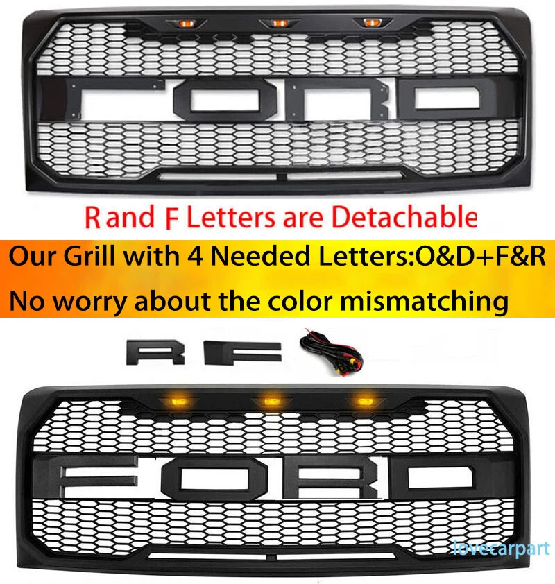 Product Description Specification: Color: Matte Black Material: Durbale ABS Plastic Part F&R Letters are detachable.You coud paint the grille in color you need. Feature: 1.Products: This grill fit for f150 2009, 2010, 2011, 2012, 2013, 2014 Ford F150. 2.Fitment:Fits for 2009-2014 Ford F150 raptor grill comes with three LED lights and FORD logo letters. 3.Features: The grill is made of ABS plastic that is lightweight and durable, giving your vehicle full protection on-road and off-road. Provides better airflow to the radiator to help the cooling process better. 4.Color: Luxury matte black front grill add more aggressive and rugged style to your front end. 5.Easy to Install: This grill replacement is very easy to install, you just unscrew the old one, and replace it with the new grill. The pre-drilled hole is matched with 2009-2014 Ford F150. All needed wiring harness of LED Accents are provided, so simply splices into existing factory headlight harness. Installation can be completed with only essential hand tools. Package Include: 1x Front Grille 1x F&RLetters 3x Amber LED Lights 1x Wire Harness About Us Payment Terms Returns Contact Us Figocarpart is one of US’s fastest growing online retailersWith our best effort, we are now trusted by more than 100,000 customers nationwide. We are dedicated to offering you an unrivalled choice of products with unbeatable low price and best quality. We ONLY accept Paypal. We ship to your eBay or Paypal address. Please make sure your eBay ID、contact and Paypal address is correct before you pay. Thank you! 1.If item is defective and not working on arrival, please contact us within 7 days of receiving the defective for repair or refund. Item may be returned within 30 days of purchase upon your receipt.All items returned must contain all original packaging materials. 2.This item have 1Year warranty. We offer free repairing service within 6 months from the date of purchased. If damaged is caused by undue wear and tear, dirt, misused, improper installation/operation, accident or repaired by unauthorized person, the warranty becomes void. 3.All returns must have prior authorization. Please message us firstly if you have any problem. Please contact us before you return the item. 4.Buyer is responsible for the return postage. If you ask for a refund during valid period, we will offer you a refund without postage charges. Shipping and handling charges, insurance are not refundable in any case. We are only responsible for once re-sending expense for replacement due to defects. Please contact us firstly if you have any problem. * We give you a 30 days money-back guarantee to return any items purchased, no questions asked, hassle-free. * You can return for refund or exchange same product or different product (difference of price will be charged) within 30 days after you receive the item. * Any returning or exchanging items must be in the original package and new condition. We reserve rights to refuse refit or damaged items (caused by buyer) for return and exchange. * No returns will be accepted if you contacted us after 30 days of receiving the item. * Return fee: Buyers are responsible to pay the return shipping fee. 15% restocking fee on total price will be charged and be deducted from the refund total. * Exchange fee: No restocking fee will be charged, however Buyers are responsible to pay the return shipping fee and exchange reshipping fee, depending on the weight of merchandise. * Email our Customer Service Department first before return the item back. Please specify your item number, your eBay ID, and the reason for the return. Click here to contact us directly. Any questions, pls contact us via ebay message or email us.We will reply your message within 48 hours. If you do not receive our reply within 48 hours, pls post a message again because sometimes our message system may block some emails. About Us Figocarpart is one of US’s fastest growing online retailersWith our best effort, we are now trusted by more than 100,000 customers nationwide. We are dedicated to offering you an unrivalled choice of products with unbeatable low price and best quality. Payment We ONLY accept Paypal. We ship to your eBay or Paypal address. Please make sure your eBay ID、contact and Paypal address is correct before you pay. Thank you! Terms 1.If item is defective and not working on arrival, please contact us within 7 days of receiving the defective for repair or refund. Item may be returned within 30 days of purchase upon your receipt.All items returned must contain all original packaging materials. 2.This item have 1Year warranty. We offer free repairing service within 6 months from the date of purchased. If damaged is caused by undue wear and tear, dirt, misused, improper installation/operation, accident or repaired by unauthorized person, the warranty becomes void. 3.All returns must have prior authorization. Please message us firstly if you have any problem. Please contact us before you return the item. 4.Buyer is responsible for the return postage. If you ask for a refund during valid period, we will offer you a refund without postage charges. Shipping and handling charges, insurance are not refundable in any case. We are only responsible for once re-sending expense for replacement due to defects. Returns Please contact us firstly if you have any problem. * We give you a 30 days money-back guarantee to return any items purchased, no questions asked, hassle-free. * You can return for refund or exchange same product or different product (difference of price will be charged) within 30 days after you receive the item. * Any returning or exchanging items must be in the original package and new condition. We reserve rights to refuse refit or damaged items (caused by buyer) for return and exchange. * No returns will be accepted if you contacted us after 30 days of receiving the item. * Return fee: Buyers are responsible to pay the return shipping fee. 15% restocking fee on t
