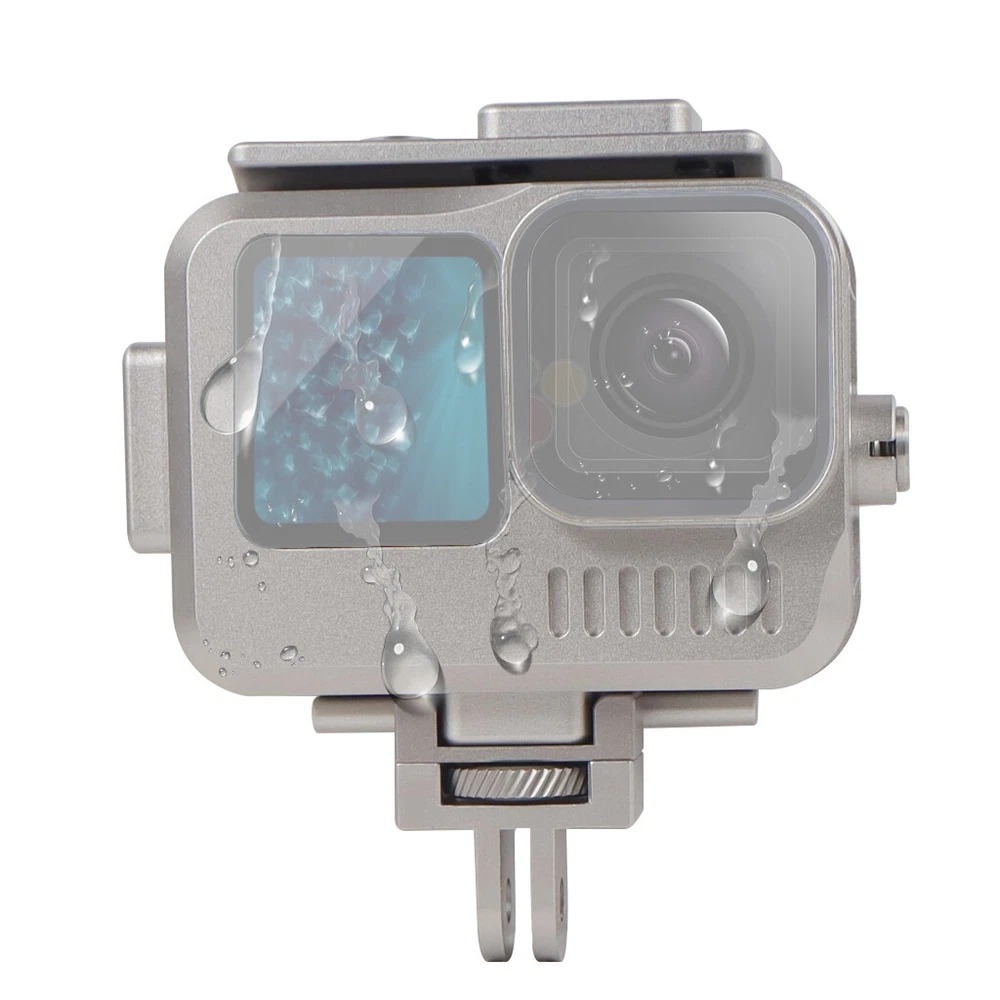 Aluminium 40m Waterproof Housing Case Diving Case for Gopro 11 10 9 Action Camera Underwater Vlog Shell Protective Frame Bracket Features. *Suitable for Gopro 11/10/9 sports cameras. *Aluminium alloy material, which provides better heat dissipation and good thermal conductivity to protect the camera from degradation due to high temperature. * 40m waterproof, high strength aluminium alloy housing with high density tempered glass. *High hardness alloy, can better protect the camera from damage, high hardness alloy, can better protect the camera from damage. *Aluminium alloy, which provides better heat dissipation and good thermal conductivity. The case protects the camera from high temperatures that can reduce performance. *Ideal for skiing, snowboarding, mountain biking, cyclocross, water sports, rock climbing and other action sports. Specifications: Material: aircraft grade aluminium alloy Weight: 180g Product size: 90mm*43mm*100mm Packing list. 1*Aluminium alloy waterproof case 1*Activated base 1*Airplane screw