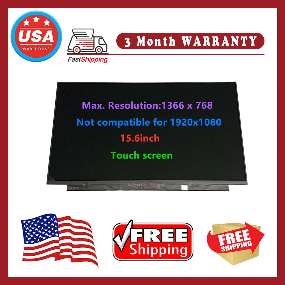 For HP PAVILION 15-EH0010NR 15-EH1074NR 15-EH3010NR LCD touch screen 15.6"HD IMPORTANT: Please check our product parameters and product pictures carefully. The products you receive will be consistent with our product pictures. This is a product just fits for HD 1366*768 Laptop with 40pins connector,not fit for other version Product Included : 1 x LCD Screen + Touch Digitizer glass Product Parameters : Condition: New Screen Size: 15.6" Screen Connector: 40pin Max. Resolution: 1366*768 HD WXGA Display Technology: LED LCD Screen Connector Location: Bottom Right Warranty: 90 Days Attention: The resolution of 1366x768 is not compatible with the resolution of 1920x1080 Note:This is a touch screen, non touch screens cannot be purchased Each shipment undergoes rigorous testing before shipment Screen P/N:M15993-001 LCD Model :NT156WHM-T04 V8.0 Compatible For HP PAVILION 15-EH0010NR 15-EH1074NR 15-EH3010NR Important: Please install it Very Professionally, if Not, Please Do Not Try. (You need to Pull Off the Power Adaptor & Battery Cable when install) Payment method Returns & Warranty Policy Shipping Details About us Contact us Payment method ● Our payment methods: PAYPAL ● if you have any problems of payment,please contact us! ● If you need to buy more goods, but the price is not very cheap, or did not find in our store, please contact us! 1. Item will be shipped within 1-3 business days. Returns & Warranty Policy (1)Within 2 months from the time you receive the product,If you receive the wrong product or there is a problem with the product, please contact us in time.we will provide prepaid labels to bear the cost of return and send a new screen for free, or a full refund ((Prepaid tags are only available to users in the continental United States) (2)If you buy the wrong or do not want it, please contact us through contact us to obtain a RMA Number within 30 days of purchase. And products must be returned 100% complete, including all components, original boxes and packing materials, manuals, and other accessories provided by the manufacturer. Return packages by C.O.D will not be accepted.(Please understand,that we can not sell again as a new item because of the product you returned.) Please ensure that returned items are the ones that you purchased from us. We are not responsible for any item sent to us that is not our product. Return Merchandise Authorization (RMA) Procedures 1.All returned screens must have all original labels in place and be free of any signs of usage, tampering, and dents 2. Obtain a Return Merchandise Authorization (RMA) number: All returns must have a RMA for processing. Please contact us to obtain approval as well as the RMA. RMA are only valid for thirty (30) days (postmarked by or carrier posted by the 30th day). 3. Include RMA on the outside of the package: It should be clearly displayed on the return-shipping label of the package. Packages without a RMA will not be accepted. Shipping Details 1. Item will be shipped within 1-3 business days. 2. We'll ONLY ship the item to your eBay Confirmed Address,so please make sure your shipping address is correct before you buy item.We have no responsibility for shipping address provided wrongly and will not accommodate address change requests. It is buyer responsibility to make sure address is correct 3.Order placed on weekends or holiday will be shipped on Monday or next working day 4. We urge you to contact us as soon as possible if you would like to cancel an order you placed. About us LCDfixfy is a based company that specializes in laptop replacement parts,Our mission is to provide our customers with the best online shopping experience possible. Our goal is provide you with simple and accurate compatibility information to make your purchase effortless and hassle free. Contact us 1. We guarantee that all our items are "as stated" in their descriptions. We strive for 100% customer satisfaction on every sale we complete. 2. Our products are direct from factory, there is no middle man, no high markup, so we can provide quality items yet very competitive price. 3. Please make sure the item is compatible for your model before ordering. If you order an item have any problems or need to do an exchange please contact us through Ebay messages and we will work things out. Please do not start any type of case. Once you do the item can only be returned for a refund. We are only human, let us know so we can rectify it for you, please do speak with us before you Leave us Negative feedback we will do everything we can to put it right.