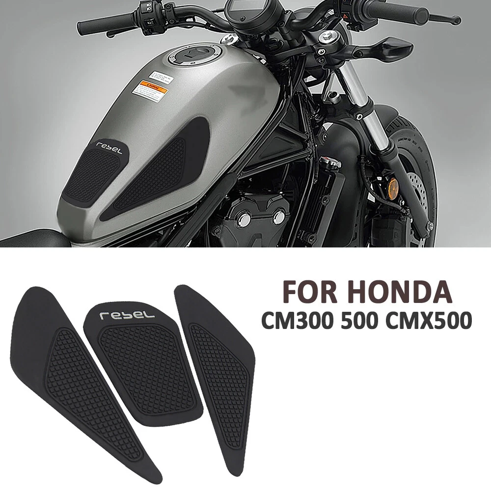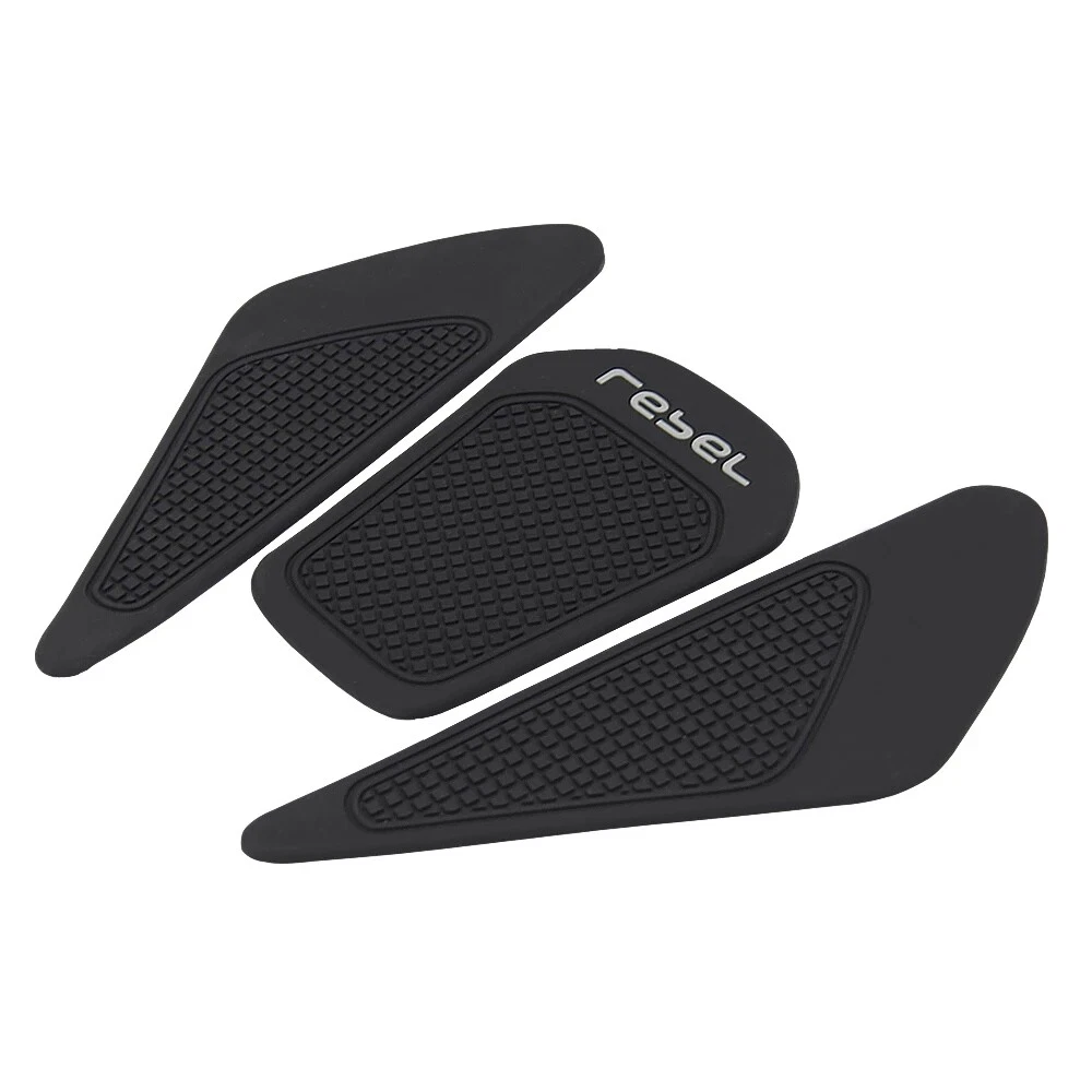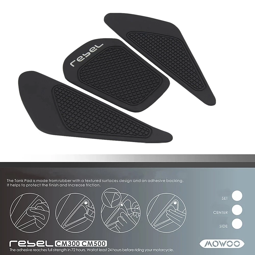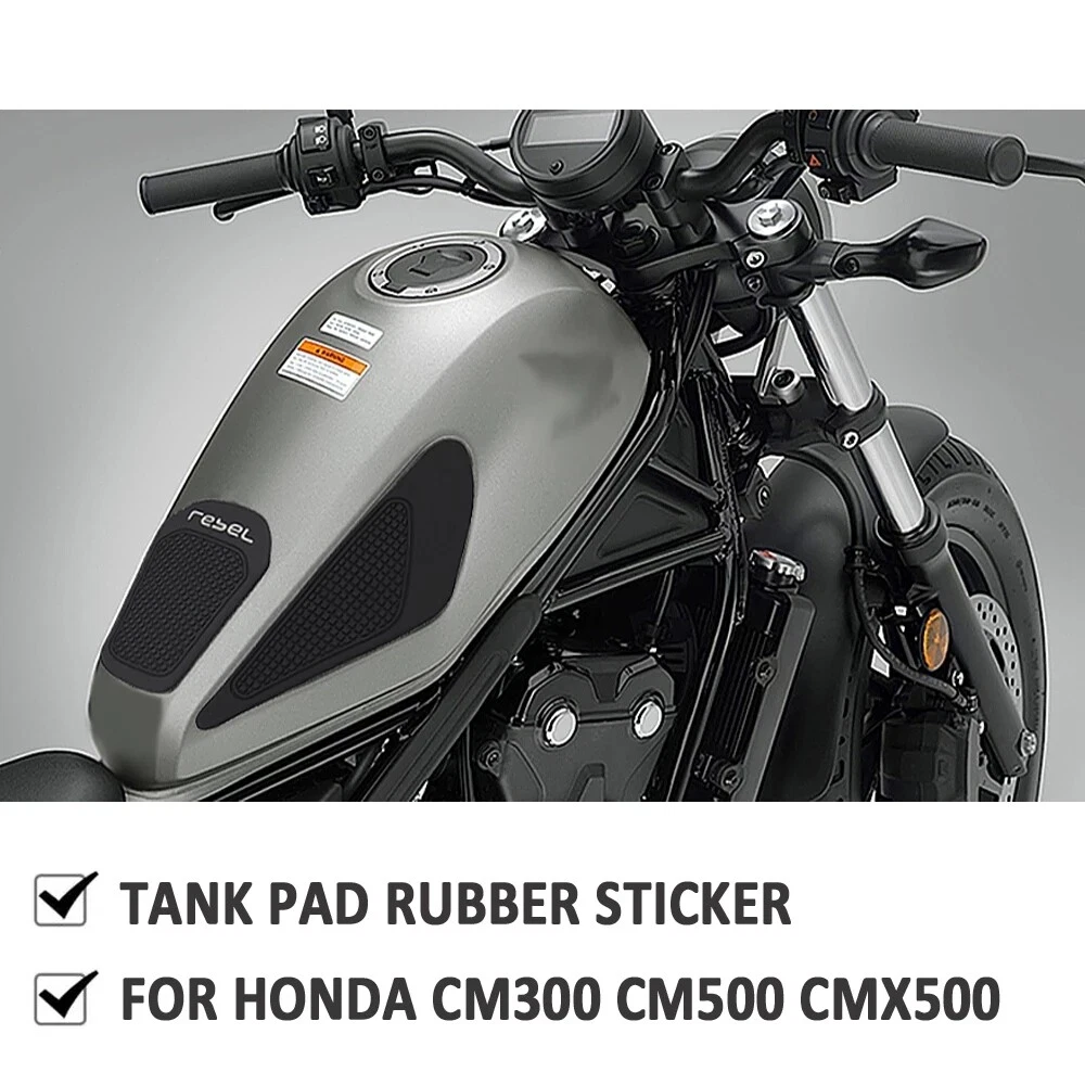 Fitment: For Honda CM300 CM500 CMX500 Description: The high-strength adhesive backing ensures the high durability of the product, which can be placed exactly where you place it, and will not affect or damage the paint. Condition: 100% brand new Colour: Black Material: rubber Installation: Adhesive on the back, just tear and paste it. NOTE : Please clean the surface of the fuel tank before use to prevent dust from affecting the adhesion effect.