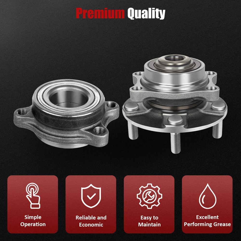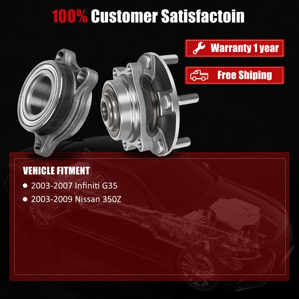 Compatibility should be checked and confirmed before placing order! Steps of confirming the compatibilities: Manage " My Garage ", and chose the right one when placing order; Or chose the " Year / Make / Model / Trim / Engine " of your vehicle on the compatible chart; Or Contact us if you have any question in confirming the compatibility, to make sure you will get the right and compatible item. Applications: Please check the copmpatible chart above. Package Content: 4pcs Wheel Hub Bearing, as picture showed Features: Location: Driver Side & Passenger Side, Front & Rear, 4pcs items in total. Manufactured to meet or exceed expectations for performance and fit. Built to strict quality control standards. Ready to use, Direct Replacement. Superior quality parts. 100% Factory tested. You will get what you see in the picture showed. About US: We are committed to making the best auto-parts products and providing you with better services. So if you have any quesiton or problem, please fell free to contact us about that. Payment: Paypal and other methods which are acceptalbe by eBay. Shipping: All item will be packed with well condition in box or envelope, we make sure the item is in good protection, also please check all the item when you get the package. Product will be shipped within 2 business days after full payment is received and verified. All domestic orders will be shipped via USPS, UPS or FedEx from our US warehouse and usually arrives to your door in about 2-7 business days. Returns & Refund: 30-day free return will be provided. -Please note that the situations below will not be incounted: -Ordered by mistake. -Don't like it. -Duplicated orders. -Damaged product during installation. Contact Us: Any quesiton or problem, do contact us please. We are always online to answer. WARNING: Cancer and Reproductive Harm - www.P65Warnings.ca.gov. End Save for Web Slices