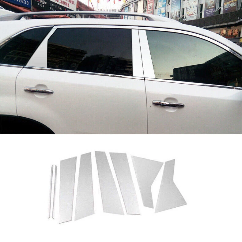 For Kia Sorento 2011-2015 Chrome Steel window Pillar Posts Set Door Cover trim Product Description Please make sure your car is the same as the picture we show you before purchase. Description Fit For Kia Sorento 2011-2015 Condition : 100% Brand new Color: as pictures Includ: 8pcs Material: Made of High Quality stainless steel Product Introduction: ✔MATERIAL--100% brand new. Strict factory QC test, high quality guarantee. ✔APPLICATION--Provide a premium and stylish decor for your car, cover existing scratches and decorate your car. ✔FEATURES--Made of use superb surface treatment technology for protection, anti-corrosion, fading protection and years of trouble-free use. ITEM SPECIFICATIONS: 100% brand new and high quality guaranteed. Decorate your car charming luxury vivid. Easy to use and to operate at affordable prices. Perfect cover that is useful,helpful and so practical. Easy to use and to operate. Please check and confirm this things fits yours before buying. Installation Instruction: 1. Easy installation, comes with self-adhesive tape, no any modification needed. 2. First check the area or location on the vehicle where this product needs to be installed. Please have the surface complete clean. 3. Peel off the cover and tape the item in the correct position of the vehicle. 4. You can also use a hairdryer to sufficiently heat the tape, this will allow the adhesive to better activate and bond to the corner. 5. Please keep it dry in 24 hours. If you need more items of this model, please visit our store, thank you for your patronage! ! !Low price sales, limited quantity ! ! ! Payment Delivery details Refunds and returns About us Contact us Payment We support all payment methods allowed by eBay Delivery details Under normal circumstances Once we have received cleared full payment, your items will be dispatched in 1-5 days. It normally takes : 7-14 business days for US, UK, Canada, Australia, Asian countries. 14-21 business days for Spain, German, Middle East countries. 18-25 business days for Russia, Brazil, Italy, France, European countries. 24-32 business days for South American countries. We send items by air mail to the buyer without track number. There maybe some delay due to flight, holiday, weather, local post, local natural disaster impact. if your shipment delays, we hope you can be patient, and at the same time contact us, we will try our best to help you. Import duties, taxes and charges are not included in the item price or shipping charges. These charges are the buyer's responsibility. Please check with your country's customs office to determine what these additional costs will be prior to bidding / buying. Refunds and returns Please contact us before leaving Netural or Negative feedback if you are not satisfied our service or products. Good communication is helpful for both of us to resolve any problems and issues. We are promising to try our best to provide the best service and 100% satisfaction for valuable buyer like you · All of the items are new. If it is not in new conditions, refund is offered. Otherwise, replacement can be offered for defective product. We will exchange or give the seller credit to buyer. · Please email us for all returns, and exchange shipping and handling charges are non-refundable. · Customers are responsible for return shippment fee except for wrong shipment or defective products. About us Here is a professional car interior and exterior modification, all kinds of pickup trucks and car accessories are available, welcome to buy, thank you for your support! Contact us Our working time is all day If you have any problem,pls feel free to contact us ,we will try our best to help you resolve it. If you satisfy with our service, your positive feedback will be appreciated. Your encouragement and support will always keep us forwards. Many thanks! Brand Unbranded Manufacturer Part Number Cover window mirrored molding Finish Polished Chrome Manufacturer Warranty Yes Installation Type Easy Do It Yourself Interchange Part Number Fit For Kia Sorento 2011-2015 Placement on Vehicle Left, Right Material Stainless steel Country/Region of Manufacture China Color Mirrored Chrome Type Window Features Easy Installation, Waterproof OE/OEM Part Number NONE Attachment Type Adhesive Vintage Part No Performance Part Yes Universal Fitment No