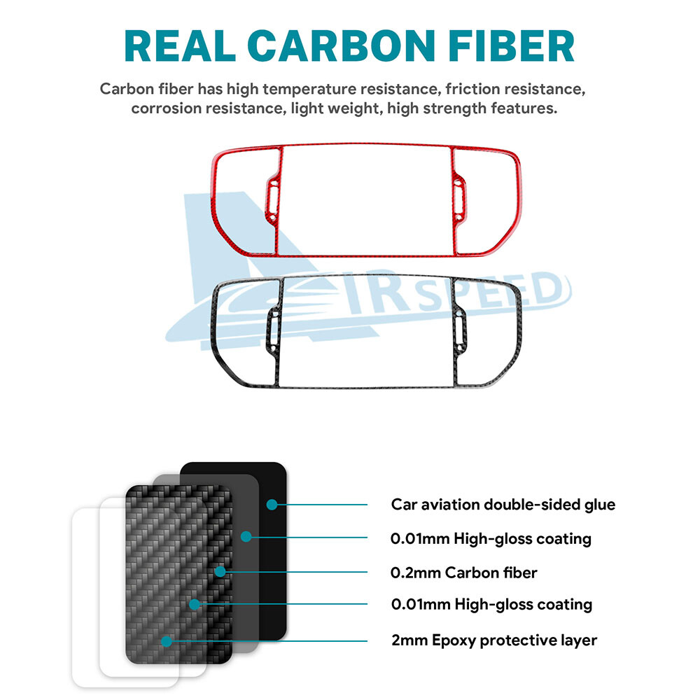 Product Detail Brand: AIRSPEED Material: Carbon Fiber Color: Black Quantity: 1PCS Use: Decoration Fixation: Stick up Description Products are made of high-quality carbon fiber material with nice textures Products are customized according to original sizes which fit perfectly Fitment For Kia Sportage 2017-2019 designed by