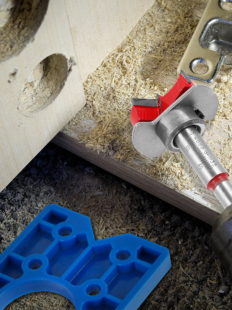 Parts List: 1 x Hinge Locator 1 x Hex Wrench 1 x Drill Bit Highlight description: [Precise & Fast Drilling] This is a set of accurate and convenient hinge hole puncher locator. It can accurately fix and drill holes, which makes the drilling work easier. It allows you to drill holes for hidden cabinet door hinges. [Adjustable Drill Bit] The drill bit is designed with detachable depth limiting baffle and clear scale, which allows you to adjust the drilling depth and makes drilling easier and more efficient. The design of the center positioning tip makes the drill bit sharper and improves the cutting speed. [Durable Material] Hinge jig kit is made of high-quality carbide and carbon steel, precision manufacturing, accurate positioning, easy operation. It is strong and durable, rust and wear resistant, and has long service life. [Package Content] The package includes 1x 35mm hinge locator, 1x adjustable drill bit and 1x hexagon wrench. The hinge drilling jig is a DIY woodworking tool, easy to use, suitable for your own home operation, does not need professionals. The best woodworking hole opening auxiliary tool. [Wide Application] This hinge hole puncher locator is suitable for hinge opening installation, door hinge punching positioning, woodworking hole opening auxiliary tool. Perfect for furniture factory, professionals and woodworking enthusiasts. Detailed description: Product Description: Our concealed hinge jig kit adopts premium material, strong and durable, which can fix and drill precisely, making hinge installation easier. Adjustable design make it suitable various thickness of wood board. It is easy to operate whether your are beginners or professionals,essential tool for carpenters. Key Features: Compact Size: All tools are designed with compact size, easy to put into the tool box, convenient for carry outside, so you can use it anytime and anywhere. Practical Hinge Jig: The hinge jig is suitable for most 35mm cabinet hinge fixtures, which can quickly locate the center point of the borehole so that the borehole will not move. Woodworking Tool: Our concealed hinge jig kit has perfect punching effect, no trace, easy disassembly and assembly, easy to use, essential tool for carpenter. Specification: Product Name: Hinge Jig Kit Material: carbide, carbon steel Color: blue + Red Cutting diameter: 35mm/1.38 in Diameter of round shank: 9mm/0.35 Length of handle: 27mm/1.06 Total length: 78mm/3.07 in Application: door, cabinet, cupboard hinges mounting Note: 1.There may be slight differences between the picture and the actual color of the commodity. We will try our best to show you the exact color. 2.Please allow slight dimension difference due to manual measurement.