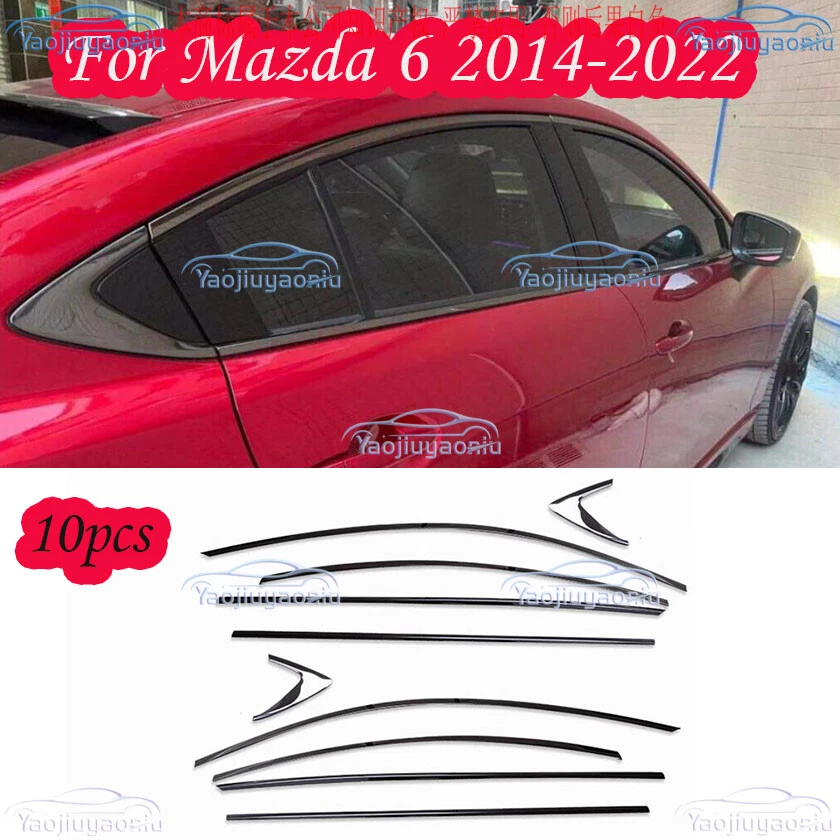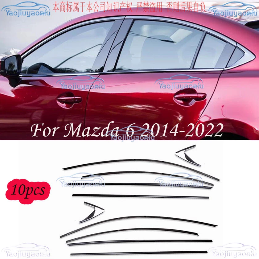 For Mazda 6 2014-2022 Steel Black Chrome Side Window Molding Cover Trim 10pcs Description Fitment : Fit For Mazda 6 Sedan 2014 -2022 Specific Condition : 100% Brand new Color: Black Chrome Include: 10PCS (1set ) Material: Made of High Quality Steel Easy installation,If you cannot install it, it is recommended to ask professionals to install it Strict Factory QC test ,High Quality guarantee Made in an ISO 9001 facility to ensure good quality Features 1. 100% brand new and high quality guaranteed 2. Decorate your car charming luxury vivid 3. Easy to use and to operate at affordable prices 4. Perfect cover that is useful,helpful and so practical 5. Easy to use and to operate Please check and confirm this things fits yours before buying. The picture has been processed by PS and may be a little different from the actual product. Please refer to the actual product received Installation Clean surface and remove any dirt, oils before attaching decal. Place decal on a hard smooth surface. (front side of decal facing up) Slowly peel off the back sheet off the decal. (make sure do not let any water or dirty get on the back of this decal) Slowly apply the decal to the smooth surface you like. (Keep it slowly to avoid any air bubble) Please keep it dry in 24 hours. Notice: Cause the same car model may be differently produced in different country.Please check and confirm this things fits yours before buying.Please ensure the part of your car like our picture shows, or it will not fit, if any differeces, please contact with us before purchase, thanks! If you need more products of this model, please find or contact us in our shop, thank you for your patronage! !
