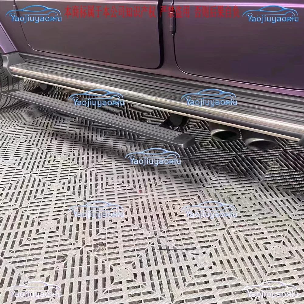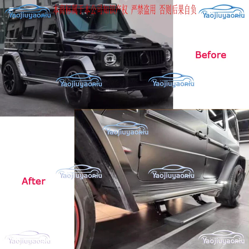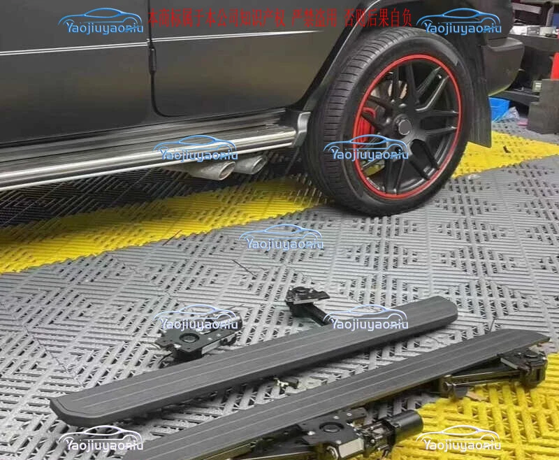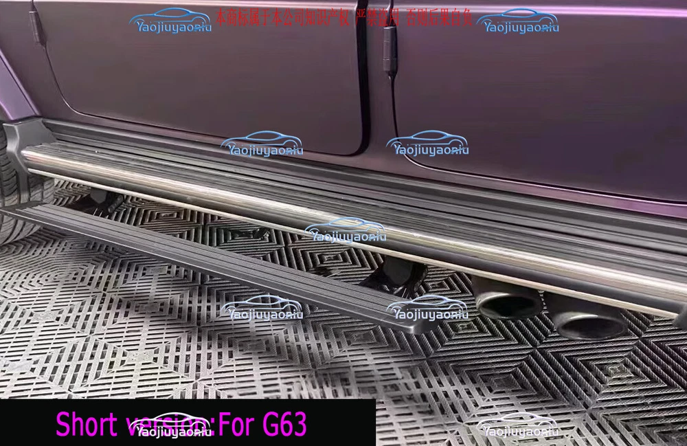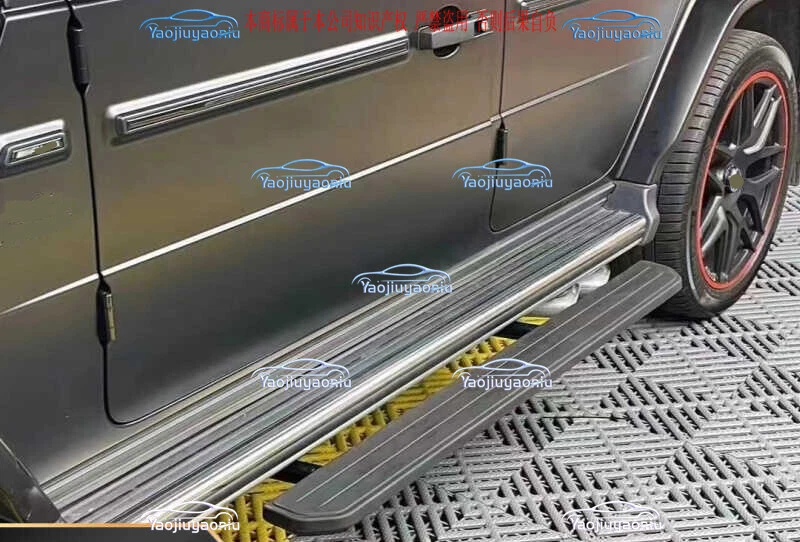 For Mercedes-Benz G-Class 19-25 Wagon W464 Car Electric Side Step Running Boards Car Electric Side Step Running Boards for Mercedes Benz G class G63 G550 W464( Long style: For G550 / Short version:For G63 ) Note: this is the short bar, Fit for the Mercedes G class car with exhaust pipe at the side, so not workable for the rear seat to step on . 1. New Electric side step bars 2. Electric motors with brackets 3. Fixing accessories / control unit 4. Color: black 5: Packing : one set
