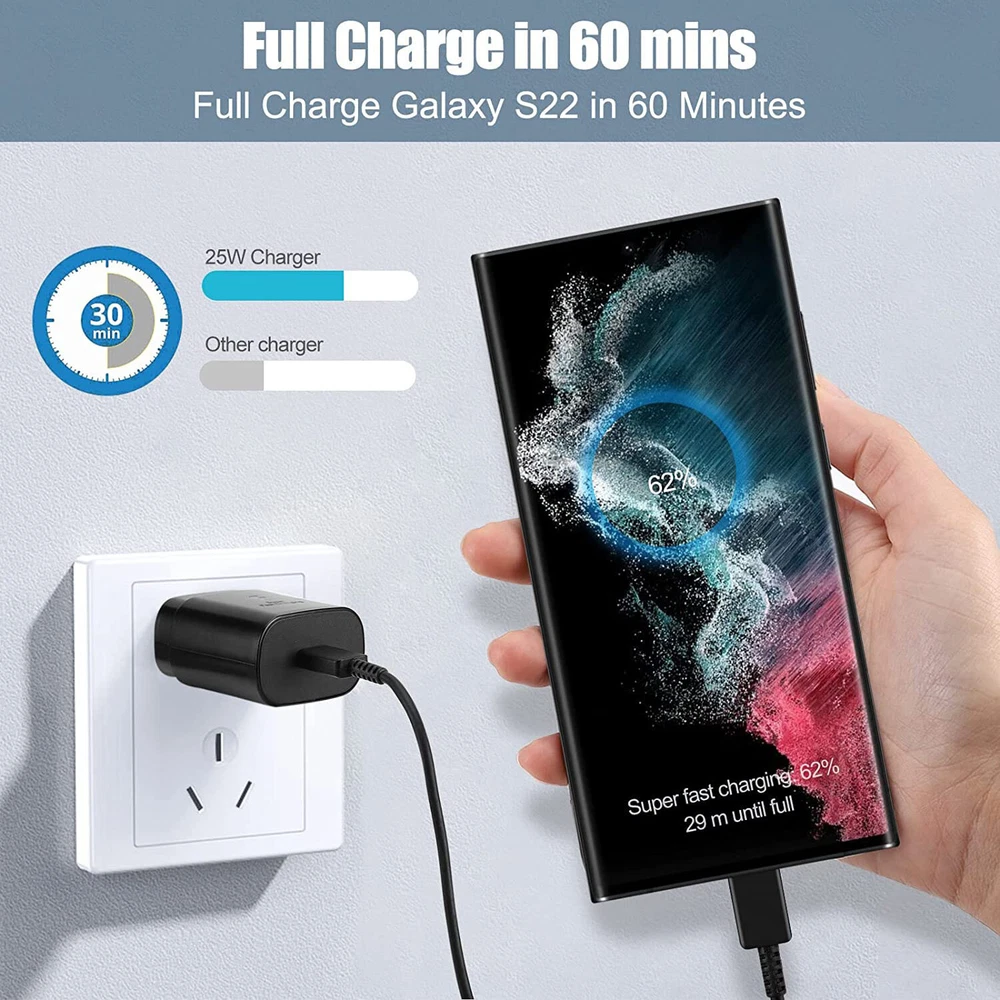 Specification : - Type: 25W PD3.0 fast charge charger - Input voltage: AC 100-240V 50-60Hz - Output power: 25W - Work efficiency: 85% - Working temperature: 0-50℃ - Output voltage: PDO 9V, PPS 3.3-5.9V or 3.3-11.0V - Output current: PDO 2.77A(9V) , PPS 3.0A(3.3-5.9V) or 2.25A(3.3-11.0V) - Output protection: short circuit protection, overvoltage protection, overcharge protection, overheat protection - Applicable products: smart phones, tablet computers, digital electronics and other equipment. Features: 100% Brand New and High Quality! UPDATED FAST CHARGER: # 25W PD3.0: Equipped with USB-C PD 3.0 charging port, Supports 25W output. SAFE AND RELIABLE : Overcharge Protection,Over-voltage,Over-temperature,Short Circuit,Over-current,Over-voltage Protection. Smart IC Chip automatically detects and delivers the optimal charging power for connected devices, to guarantee fast charging.
