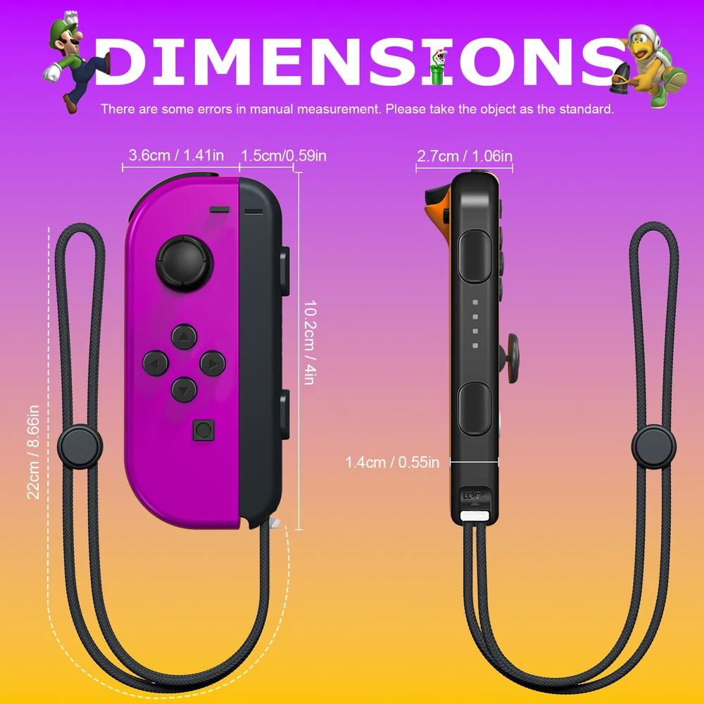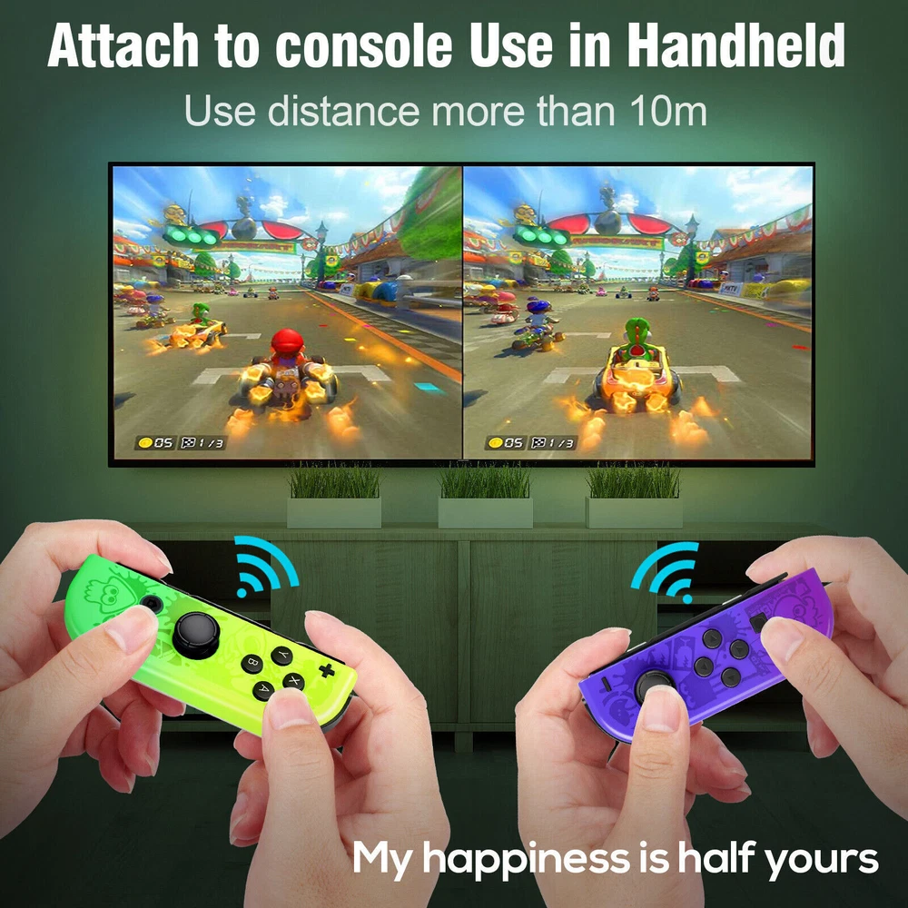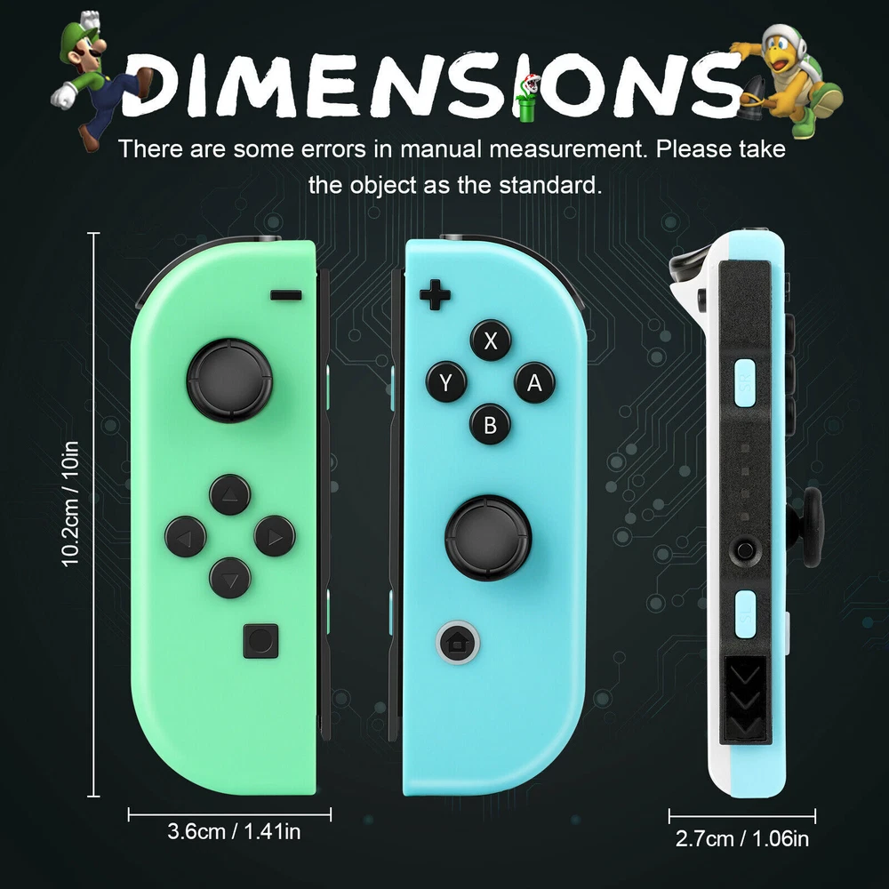 For Nintendo Switch Joy-Con Controller Gamepad Left + Right Wireless Joystick US Notes: We sell the controller and straps seperatelly, if you need both, please buy both Set. Features: 【Design for Nintendo Switch】 Switch controller is an ideal alternative to original controller, which is perfectly compatible with Switch. The left and right controller can be used alone, which is suitable for multi players combat or cooperative playing. It can also be installed on the switch to become a handheld mode, suitable for playing games alone. 【Support Wireless & Wired Function】 Switch controller the simple slot design ensures your switch is safe. Support the cable connection by sliding the switch controller onto the console and the switch controller automatically connects to the console. If the controller is not powered on, after connecting the console through the cable, the console will charge the controller. 【Ergonomic Design & Long Playtime】 Switch joycon the switch controllers offer multiple surprising new ways for players to have fun; With the unique grip and ergonomic design to rest your palms and index fingers. Comfortable to Hold If you use your switch as a handheld. You can now play for hours without your hands hurting. Especially fits for large hands. built-in battery in each joy con controller provides 15-20 hours gaming session. 【High Performance and Include Grip】 Switch joycon controller joy con controller left and Right Controllers controllers can be used as an entire controller or can be used as two independent controllers for Switch.Neoteric 3D stick can be operated precisely on 360°all-round. Offering you a pleasant gaming experience. NO NFC to support function and IR motion camera function. 【Double Shock & Motion Control Function】 Switch Joypad controller supports the Gyro axis and dual motors vibration functions. With 6-Axis gyro somatosensory and motion controls functions to provide real and stimulated gaming experience; Feel every hit and crash with hand-vibrating double shock response. Highly sensitive motion control system senses your every move and characters as well as objects in the game will move and react as you tilt,push and shake the controller. Compatible with Nintendo Switch/Lite/OLED console, NEW Replacement Not Original. Package: 1 pair controller( Left + Right ) Payment Delivery details Terms of sales About us Contact us Payment We accept payment via PayPal, Visa, Mastercard, Apple Pay, Google Pay etc. Delivery details 1. Items are generally shipped out within 24-48 hours after your payment has been cleared (Sat. & Sun. excluded.) 2. Orders from the United States will all be shipped out via USPS/Fedex. The shipment usually takes 1-5 business days( Exclude public holiday), if you need the item urgently, please contact us for detail before purchase. 3. We ship to US ONLY and do not support Collection. 4. All items will be shipped to buyer's paypal address. Please check your paypal address before place the order. 5. We are not responsible for wrong or undeliverable address. We reserve the right to charge the shipping fee again for returned items due to wrong address. Terms of sales 1. We provide 30 days free replacement ,30 days money back on non-defective, undamaged, unused and resalable products. Product is not eligible for refund after the 30-day refund period has expired. 2. Our warranty does not extended to any products that are physically damaged or that are not under normal operating conditions as a result of misuse or improper installation on the buyer/user's part. 3. For all returned products, Please contact us for the returning address. 4. In all cases, buyers pay shipping fees at their own cost to return products for exchange or refund. We will be responsible for the postage of replacements. Refund will be made upon receipt of the returned item. About us (1) We are a store, mainly run laptop accessory. Such as laptop battery , tool battery, ac adapter etc. (2) All item passed FCC / CE / ROHS certificates. Help buyer reduce the risk of damage, fire, dangerours mostly. (3) We work with a good quality OEM supplier and factory. Help you and us save money greatly. Contact us - You don't need to pay for eBay Square Trade for getting covered by our warranty policy. - There is a warranty label on our products like batteries and adapter chargers, please keep it safe and sealed. - We don't cover the failure or damage caused by misuse, accident, modification, inappropriate physical or operating environment, natural disaster, power surge, and improper maintenance or storage. - If you misuse the eBay Return Policy, our warranty to your purchase will be revoked. - Please contact us via eBay message if you have any problem and please allow us 24 hours to reply, we will do our best to help you solve it.