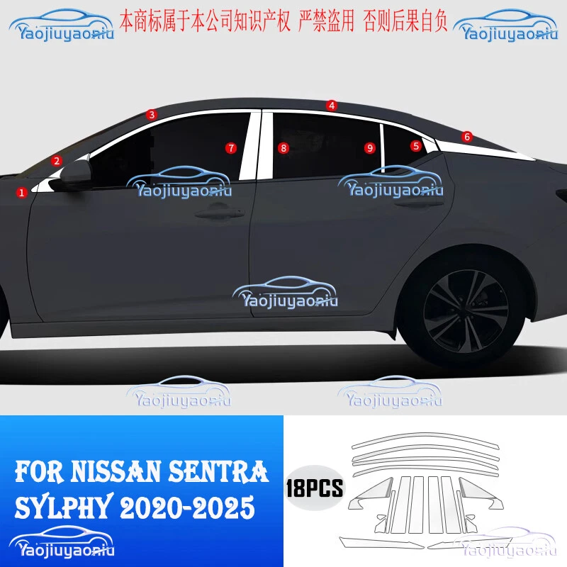 For Nissan Sentra Sylphy 2020-2025 Chrome Steel Upper Window Sill Molding Strip Description Fitment : Fit For Nissan Sentra Sylphy 2020-2025 Specific Condition : 100% Brand new Color: As Pictures Include: 18PCS Material: Made of High Quality Stainless Easy installation,If you cannot install it, it is recommended to ask professionals to install it Strict Factory QC test ,High Quality guarantee Features 1. 100% brand new and high quality guaranteed 2. Decorate your car charming luxury vivid 3. Easy to use and to operate at affordable prices 4. Perfect cover that is useful,helpful and so practical 5. Easy to use and to operate Please check and confirm this things fits yours before buying. The picture has been processed by PS and may be a little different from the actual product. Please refer to the actual product received Installation Clean surface and remove any dirt, oils before attaching decal. Place decal on a hard smooth surface. (front side of decal facing up) Slowly peel off the back sheet off the decal. (make sure do not let any water or dirty get on the back of this decal) Slowly apply the decal to the smooth surface you like. (Keep it slowly to avoid any air bubble) Please keep it dry in 24 hours. If you need more products of this model, please find or contact us in our shop, thank you for your patronage! !