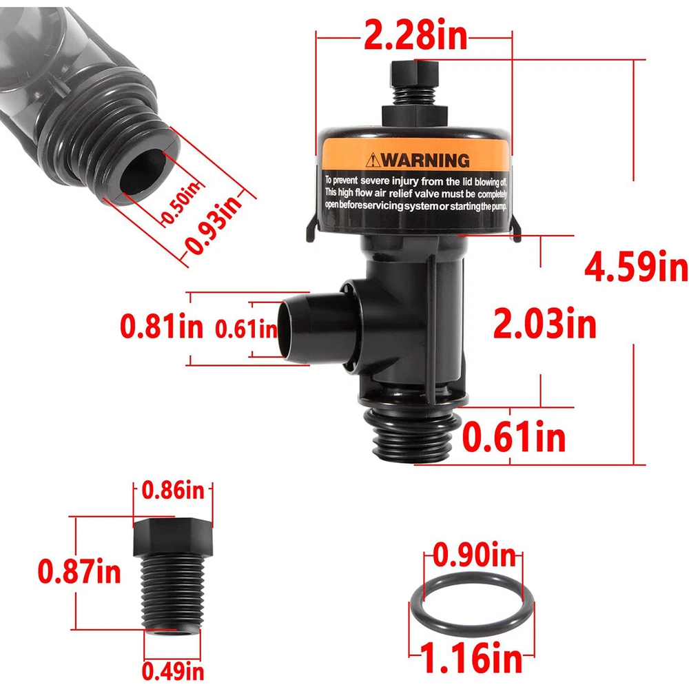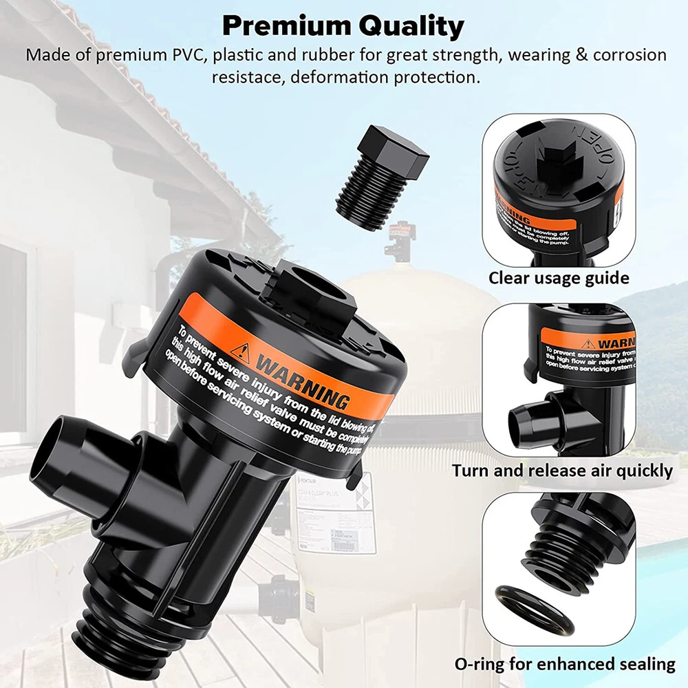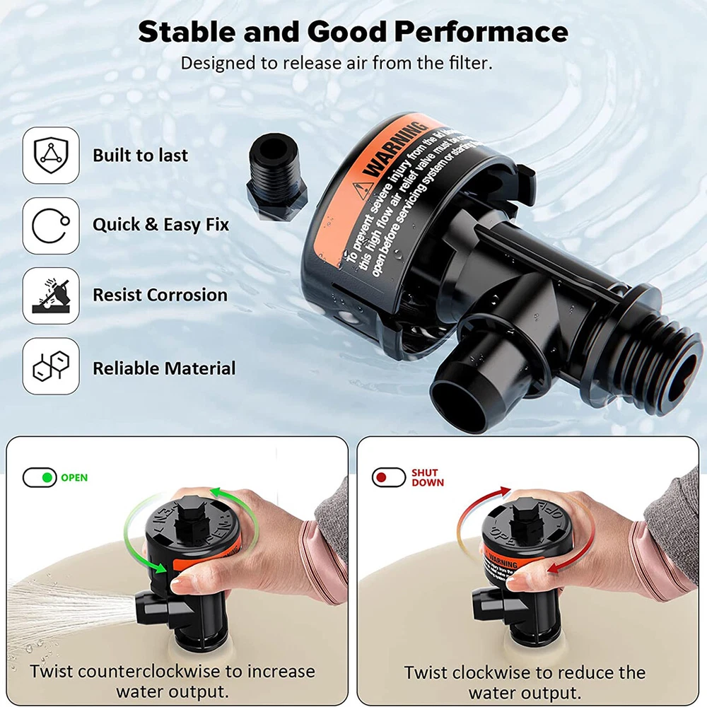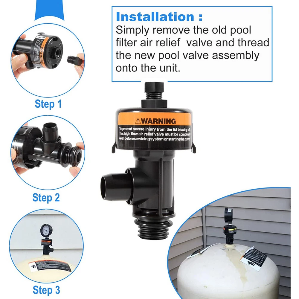 Fitment: Fits for Pentair Clean & Clear Aboveground, Clean & Clear Plus, Clean & Clear/Predator pool and spa cartridge filters. Also fit for Pentair Warrior, EasyClean Aboveground, EasyClean, FNS, FNS Plus, SM & SMBW 2000 & 4000 Series pool and spa D.E. filters Features: 1) This air relief valve is compatible with Pentair 188592, 188593, 188594, 160316, 160317, 160318, 160301, 160332, 011555, 147411, 180007, 180008, 180009 filter 2) Designed to help release air from the filter. Easy to replace and use. Remove the broken one directly, then screw the new air relief valve assembly into the original place. When in use, turn the air vent valve directly to expel the air. If water is ejected, turn the valve back to its original position 3) Made of high quality plastic and rubber, professional manufacture. Features with durable, sturdy, good wear and corrosion resistance, no deformation, no leak 4) This high flow manual relief valve is very easy to install and screw to the filter. No needs for any actual tools. Simply screw the gauge plug and put the rubber O-ring onto the threaded section of the tail end and insert the 98209803 right in the place of the filter 5) 98209800 High Flow Manual Relief Valve is compatible with Pentair Warrior, EasyClean Aboveground, EasyClean, FNS, FNS Plus, SMBW 2000 Series and 4000 Series and spa D. E. filters. Also fits for Pentair Clean and Clear (ccp100, ccp320, ccp420, ccp520), Quad DE 60, 80 and 100 and all Predator Filters for use with Package included: High Flow Manual Relief Valve Replacement Kit