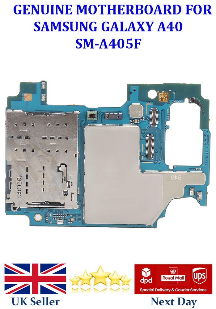 For Samsung Galaxy A40 SM-A405F Genuine Motherboard Unlocked Fully Working The motherboard is in fully working condition and resets to factory settings. The IMEI is CLEAN, NOT BLACKLISTED, NOT LOST OR STOLEN.