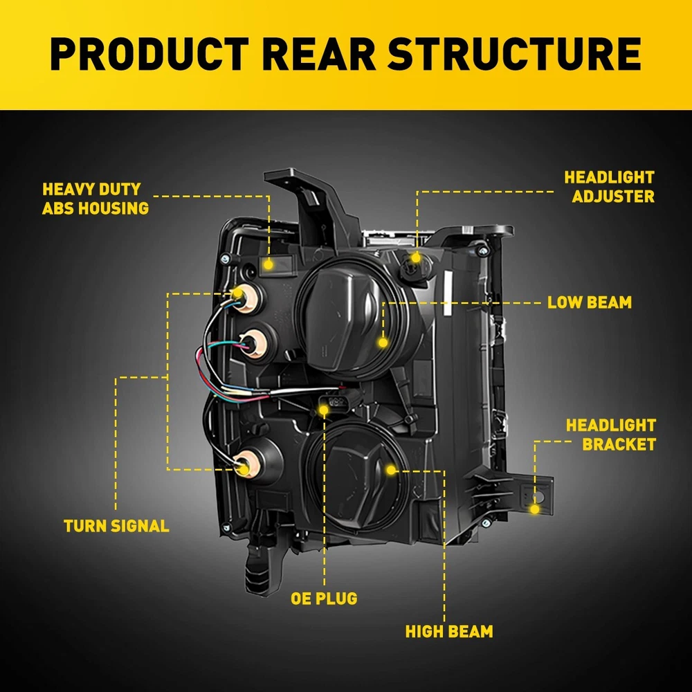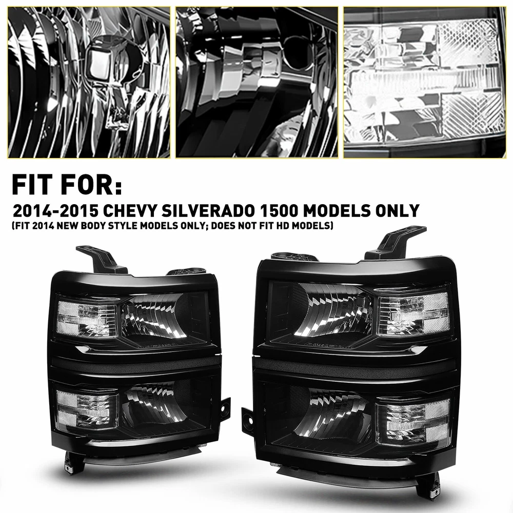 Headlights Headlamps Fit For 2014-2015 Chevy Silverado 1500 models only Fit for: 2014-2015 Chevy Silverado 1500 Models Only (Fit 2014 New Body Style Models Only; Does NOT Fit HD Models) Specifications: OE number: 20933724, 20933725, 20933722, 20933723, 23172782, 23172783 GM2502389, GM2503389, GM2502395, GM2503395, GM2502410 Material: ABS+PC (ABS Plastic Housing/Polycarbonate lens) Appearance color: 1.Housing Color: Black 2.Lens Color:Clear 3.Reflector Color:White Note: Projector ×(Not include) DRL ×( Not Include) For Silverado 1500 2014-2015 Chevy Factory Style Headlights Headlamps Pair L+R Headlights Headlamps Fit For 2014-2015 Chevy Silverado 1500 models only Fit for: 2014-2015 Chevy Silverado 1500 Models Only (Fit 2014 New Body Style Models Only; Does NOT Fit HD Models) Specifications: OE number: 20933724, 20933725, 20933722, 20933723, 23172782, 23172783 GM2502389, GM2503389, GM2502395, GM2503395, GM2502410 Material: ABS+PC (ABS Plastic Housing/Polycarbonate lens) Appearance color: 1.Housing Color: Black 2.Lens Color:Clear 3.Reflector Color:White Note: Projector ×(Not include) DRL ×( Not Include) Bulb × (Not include) Features: *Easy to install: Direct replacement, drilling and cutting are not required. *Superior quality: Made of ABS and PC materials with toughness and heat resistance functions to ensure its long service life and durability. *Angle adjustment: Equipped with a headlamp Angle adjustment knob, you can adjust the best Angle of view through the knob. *Suggestion: 1.Please confirm the OE number before purchasing!!! 2.Professional installation is required!!! Packaging include: Headlights*2(Left+Right) Item Specifics Mounting Style Screws Bulbs Included No Fitment Type Direct Replacement Items Included Driver & Passenger Side Headlgihts Manufacturer Part Number DDZC-SILVERADO-14-15-BC-EOOH Material ABS Plastic / Polycarbonate Lens Superseded Part Number SDD-HLOHCSIL14BKCL1 Placement on Vehicle Front, Left, Right California Prop 65 Warning This product contains chemicals known to the State. Brand AUXITO Bulb Shape Code 9005 High / H11 Low Beam Type Headlight Assembly Interchange Part Number 20933724 20933725 20933722 20933723 23172782 23172783 2014 2015 Parking Light 7443 OE/OEM Part Number GM2502389 GM2503389 GM2502395 GM2503395 GM2502410 Housing Color Black Style OE Features Reflector Housing Lens Color Clear Lens / Clear Reflector Turn Signal 7443A Lighting Technology Halogen Payment Returns DESCRIPTION PAYMENT SHIPPING RETURN POLICY CONTACT US Shop Category Store Home LED Headlight ◈ H4 ◈ H13 LED Reverse Light ◈ T15/921/W16W LED License Plate Light LED Side Marker Light Car Parts & Accessories Tail Light assemblies Other Hot Item Picture New List Item 4PC Smoked Lens LED Front Side Lamp Marker White For 2003-09 Dodge Ram 2500 3500 USD 15.99 For 2016-2018 Honda HRV HR-V Chrome Housing Headlights Assembly Left&Right Pair USD 145.99 For 2015-2020 Chevy Tahoe Suburban [OE Style] LED DRL Headlights Headlamps LH USD 139.99 Pair Halogen Headlight Set For 2011-2015 Chevrolet Chevy Cruze 4-Door Sedan EOV USD 113.99 Smoked Lens White LED Bumper Rear Side Marker Lights For 1993-2002 Chevy Camaro USD 22.29 Help & Info Payment Policy Shipping Policy Return Policy FAQ About Us For Silverado 1500 2014-2015 Chevy Factory Style Headlights Headlamps Pair L+R Headlights Headlamps Fit For 2014-2015 Chevy Silverado 1500 models only Fit for: 2014-2015 Chevy Silverado 1500 Models Only (Fit 2014 New Body Style Models Only; Does NOT Fit HD Models) Specifications: OE number: 20933724, 20933725, 20933722, 20933723, 23172782, 23172783 GM2502389, GM2503389, GM2502395, GM2503395, GM2502410 Material: ABS+PC (ABS Plastic Housing/Polycarbonate lens) Appearance color: 1.Housing Color: Black 2.Lens Color:Clear 3.Reflector Color:White Note: Projector ×(Not include) DRL ×( Not Include) Bulb × (Not include) Features: *Easy to install: Direct replacement, drilling and cutting are not required. *Superior quality: Made of ABS and PC materials with toughness and heat resistance functions to ensure its long service life and durability. *Angle adjustment: Equipped with a headlamp Angle adjustment knob, you can adjust the best Angle of view through the knob. *Suggestion: 1.Please confirm the OE number before purchasing!!! 2.Professional installation is required!!! Packaging include: Headlights*2(Left+Right) Payment Returns All rights reserved. On Dec 17, 2024 at 07:13:28 PST, seller added the following information: