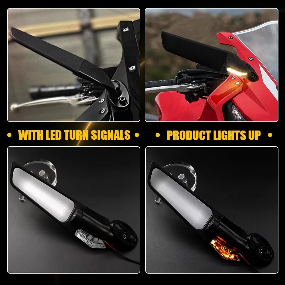 LED Wind Swivel Wing Rearview Side Mirror With Light for Yamaha R1 R3 Kawasaki Specifications: Material:CNC Aluminium Alloy & Glass & ABS plastic Color:Black Placement on vehicle: Front left,right Fits for: Univeral fit for Honda/ for Suzuki/ for Kawasaki/ for Yamaha/ for BMW/ for Aprilia/ for Ducati Note: With LED turn signal light,With 2pcs blind spot mirror Features: Simple installation Simple installation with direct replacement,other modifications are not required. Superior material Made of superior material with strong hardness and corrosion resistance to ensure its long service life and durability. For Suzuki GSXR 750 Side Mirror Rearview Wind Wing Mirror Blind Spot Mirror M LED Wind Swivel Wing Rearview Side Mirror With Light for Yamaha R1 R3 Kawasaki Specifications: Material:CNC Aluminium Alloy & Glass & ABS plastic Color:Black Placement on vehicle: Front left,right Fits for: Univeral fit for Honda/ for Suzuki/ for Kawasaki/ for Yamaha/ for BMW/ for Aprilia/ for Ducati Note: With LED turn signal light,With 2pcs blind spot mirror Features: Simple installation Simple installation with direct replacement,other modifications are not required. Superior material Made of superior material with strong hardness and corrosion resistance to ensure its long service life and durability. Reduce the rag The rearview side mirror can reduce the wind resistance and increase the sense of movement. Stable performance The product with stable performance provides a better shopping experience for our regular customer. Packaging include: 2X Rearview Side Mirrors (with LED turn signal light) ABOUT US For Suzuki GSXR 750 Side Mirror Rearview Wind Wing Mirror Blind Spot Mirror M LED Wind Swivel Wing Rearview Side Mirror With Light for Yamaha R1 R3 Kawasaki Specifications: Material:CNC Aluminium Alloy & Glass & ABS plastic Color:Black Placement on vehicle: Front left,right Fits for: Univeral fit for Honda/ for Suzuki/ for Kawasaki/ for Yamaha/ for BMW/ for Aprilia/ for Ducati Note: With LED turn signal light,With 2pcs blind spot mirror Features: Simple installation Simple installation with direct replacement,other modifications are not required. Superior material Made of superior material with strong hardness and corrosion resistance to ensure its long service life and durability. Reduce the rag The rearview side mirror can reduce the wind resistance and increase the sense of movement. Stable performance The product with stable performance provides a better shopping experience for our regular customer. Packaging include: 2X Rearview Side Mirrors (with LED turn signal light) FAQ Shipping Returns Contact Us Payment Why swith to LED? LEDs not only give your vehicle a clean, modern look but, with proper use, will outlast any halogen bulb and HID bulb! Low energy draw, high lumen output, and instant on/off LED technology out shines stock bulbs in every way. Which bulbs are used in my vehicle? Check Sylvania automotive lamp replacemnt guide , you can select the year, make, and model of your vehicle, then select the application you want to replace or upgrade from stock. What does CAN Bus mean? CAN Bus means Controller Area Network Bus. This system monitors your vehicle and reports operating conditions. CAN Bus systems are commonly found in European vehicles such as BMW, Audi, Mercedes, Volkswagen, Porsche, and in many American vehicles. While most late model American vehicles have CAN Bus systems, it is always good to check with your vehicle dealer to see which system your vehicle has before purchasing electrical products. When do you need Warning Canceller? Some vehicles with cmplex internal computers(such as Audi,BMW,Jaguar,Mercedes,etc.) might report on-dash errors or flickering on the headlights. The warning canceller fixes the dashboard warning and flickering effect. Bulb Out Dashboard Error: On some vehicles, the dashboard will report as if you have a headlight bulb missing or burnt. It does not affect the headlights functioning, but the light on-dash will be on. The warning canceller fixes the issue. Flickering Issue: This happens when your vehicle does not recognize the new headlights installed. When turning the headlights on, the vehicle's computer does not understand the signal back from the headlights hence thinking they are still off. This triggers the headlight flickering effect. The warning canceller solves this issue. LED Advantages: Very low and efficient energy consumption than halogen bulbs & HID Bulbs Compared with HID bulbs, LED bulbs Light up instantly, no warm up period Low voltage protection, high precision constant current driver chip Longer lifespan than HID and halogen bulbs Light can be controlled easily in color and intensity Easy to install a LED headlight conversion kit (1) We will ship your item(s) within 24 hours. (2) We ship this item to US only via USPS first class mail. It usually takes 3-6 working days to deliver. How Long Will It Take to Receive My Refund? If you have emailed us for a refund ,once we have approved it ,after 60 days your money will be refunded. The estimated time for the refund to appear in your account is based on the payment method you use. Paypal is the only supported in NIGHTEYE Store. Please notify us within 30 days after you've received your purchased item. All return requests must be submitted through your eBay account. NOTE: Buyers pay for the return shipping fee. Items to be returned must be in resalable condition, for example: You do not satisfy the item quality Item do not fit your vehicle perfect Item can not reach your expectation The item arrived be broken You do not receive the item Parcel Lost Receive the wrong item If you have problems with the above issue, please Contact Us immediately ! [Our office hours are MONDAY - Saturday 9:00PM - 6:00PM PST, but we will response you once we get your message .There will be some delay on respons if you send message or E-Mail on Sundy.] (1).Negative feedback will not help resolve any problems you have, plea
