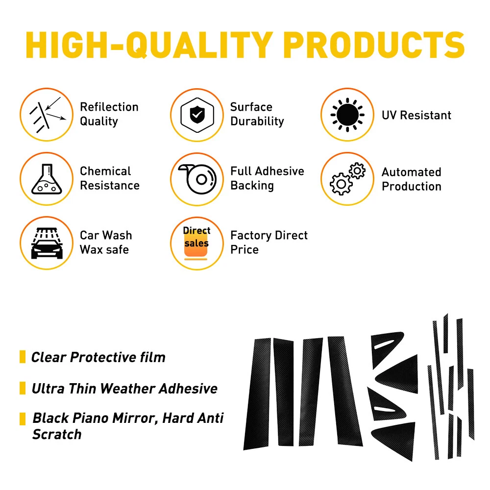 Fit for: 2020-2022 Toyota Corolla Specification Color: carbon fiber Material: Superior PC Features: Direct replacement: This window pillar was designed to restore and protect the exterior appearance of your vehicle. Excellent value: Superior quality at a lower price Note: 1.Wipe door pillar clean before pasting, and ensure that the sticker does not touch the water within 24 hours after pasting. 2.There is a protective film on the surface of the product, which needs to be removed after installation. Packaging include: Pillar Posts*16 For Toyota Corolla Sedan 2020-2022 5D Carbon Fiber Pillar Posts Door Trim 16Pcs Fit for: 2020-2022 Toyota Corolla Specification Color: carbon fiber Material: Superior PC Features: Direct replacement: This window pillar was designed to restore and protect the exterior appearance of your vehicle. Excellent value: Superior quality at a lower price Note: 1.Wipe door pillar clean before pasting, and ensure that the sticker does not touch the water within 24 hours after pasting. 2.There is a protective film on the surface of the product, which needs to be removed after installation. Packaging include: Pillar Posts*16 Item Specifics Color 5D Carbon Fiber Manufacturer Part Number pillar posts door trim panel strip part side cover Material Vinyl Superseded Part Number For Toyota Corolla Sedan 2020 2021 2022 Pillar Posts Door Trim Placement on Vehicle Left Right Suitable For Car Trailer Vehicle Windows Brand Unbranded Type Window Interchange Part Number Piano Black Pillar Post Covers OE/OEM Part Number For 2020-2022 Toyota Corolla Manufacturer Warranty 2 Years Attachment Type Adhesive Theme Baby Features Easy Installation Self-Adhesive Country/Region of Manufacture United States Finish Gloss Manufacturer Warranty 2 Years FAQ ♥ If you have a decoding problem or any other problems, please contact us first, we will help you with it. We will reply you within 24 hours in working days. I'm a new seller, thanks a lot for your trust and convince! I will serve you with all my heart. ♥ Q1: Will this bulb fit my vehicle? A: We can match almost any vehicle to one of our bulb sizes. eBay only lets us include some vehicle fitments per listing, but if your vehicle does not show up on the compatibility table at the top of our listings, welcome you to contact us for free consulation before purchasing a product. Q2: My item has not arrived, what's taking so long? A: Sometimes items take longer than expected, especially if it’s going far or to rural area. Check with your post office to see if your item has been held up. Sometimes Royal Mail will not update a tracking number until it has arrived at its destination. If your item still don't arrive after a few days, let us know so we can double check for you and help solve it asap. Q3: My bulbs won't fit, help! A: Special bulb holder may be required. See if you can take the holder from the stock bulb. If not, let us know. The bulb size may be wrong, double check the item you received with the item you ordered. Do you have an aftermarket lighting housing? These may not be perfectly fitted for aftermarket bulbs and will require some manual modifications. Q4: Neither side lighting up? Both sides flicker, hyper flash, or work inconsistantly. A:Check the light fuses, and then check the ballast plugs to insure correct installation. If this doesn't work, there may be a voltage problem with the vehicle. You probably just need a relay or capacitor. Even though some bulbs are builtin resistors, they may still need a decoder. Pay & Ship (1). We gladly accepts payment via PayPal, We will ship your item(s) within 24 hours. (2). Before payment, please keep the consistency of Paypal address and ebay address. (3). Quantity orders are welcome! Returns (1). We offer 60 days free return policy. Please contact us within 60 days from the date you receive your order if you have any issues with the product or want return. Refund will be send after we got your resend package. (2). All returned items should be in the original packaging , return tracking information should be provided . Contact Us (1).Negative feedback will not help resolve any problems you have, please contact us via eBay messages before leaving negative feedback , our customer service will make best effort to help you with the issues. (2).We maintain high standards of excellenceand strive for 100% customer satisfaction! Feedback is very important to us. We request that you contact us immediately before you give us neutral or negative feedback, so that we can satisfactorily address your concerns. About us We're professional in car and motorcycle accessories, especially in LED bulbs. We have our own factory and R&D team. Our belief is to sell top quality items that fit your car and serve you with our heart. Anything please feel free to contact us! Our customer service is very responsibility. Come and follow us! DESCRIPTION NEW ARRIVED HOT SALE CONTACT US SAVE US Store Category Store Home Other Hot Item Sun Strip Visor Windshield Banner Premium Vinyl Decal Cast PVC Film Gloss Black USD 12.34 2/4x Side View Mirror Fender Corner Trim Cover Fit for Toyota Corolla 2008-2013 USD 10.44 For TOYOTA CAMRY 2007-2011 US DashMat Dash Cover Dashboard Mat Car Interior Pad USD 19.94 Universal 4/8x Rear Bumper Diffuser Fin Spoiler Lip 4 Wing Splitter Carbon Fiber USD 13.99 For Toyota Car Door Plate Sill Anti Scuff Cover Scratch Decal Sticker Protector USD 12.34 New List Item Car Interior Wood Brown Grain Vinyl Wrap Sticker Decal Sheet DIY Film 30*100cm USD 11.99 16x Car Door Handle Bowl Guard Protective Film Reflective Sticker Strips Scratch USD 22.39 Black Pillar Honda 2018-2021 Posts Accord 8pcs/Set Trim Door Piano Cover Window USD 14.99 1/2set For Toyota Highlander 2020-2022 Right Side Rearview Mirror Triangle Base USD 18.99 1/2set Mud Flaps Splash Guards For 1996-2000 Honda Civic Coupe Sedan Front & Rea USD 36.99 Picture For Toyota Corolla Sedan 2020-2022 5D Carbon Fiber Pillar Posts Door Trim 16Pcs Fit fo