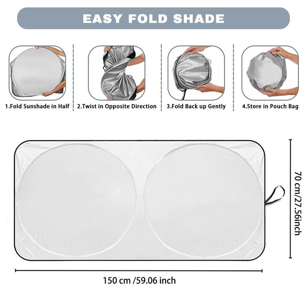 For Volkswagen Car Windshield Sun Shade Sun Visor UV Block Heat Shield Protector Fitment: Small Size (150 x 70cm): It will fit for ALL SUV ,Trucks, Vans, and Cars with windshields not exceeding 59"*27"! Fit For Volkswagen For Volkswagen Beetle 2011-2021 For Volkswagen Jetta SDN/Wgn 1993-2021 Please measure the size of your car front windshield for further confirm. Features: Protects Your Car Interiors - We know that the sun heat can be exhausting to you as well as to your car. Our Car Sun Shade for Windshield is effective against harmful UV rays from damaging your car's interior accessories. It is super durable and convenient to use. Superior Sun Protection - Our Sun Shield for Car offers outstanding automotive interior sun protection. Thanks to the high-quality, durable 240T sun blocker screen protector material, your car's interior temperature will stay at an optimum level! Perfect Size for Your Cars - This car window shade is 59"L x 27" W . The sunshade is for car windshield that is no larger than 59"L x 27" W . Our sun shade car windshield is best for smaller cars windshields. Measure before purchasing to get the best size for your car windshield. Compact Design - Our car window shade comes with a free compact travel pouch. You can fold in seconds without any suction cups or adhesives. After folding, you can take your Car sunshade in your door pocket, behind your sun visor or behind your car seat protector. Product Details: Type: Windshield Sun Shade Related Parts: Windshield Attachment Method: Unfold Behind Windshield Material: Reflective Silver-Coated Nylon Color: Silver&Black Size: 59" x 27" / 150cm x 70cm Net Weight: 150g Applications/Compatibility: Adjustable fit, please measure your windshield before buying Package Included: 1x Car Windshield Sun Shade 1x Storage Bag Payment We can accept payment of Paypal only. Payment should be made within 7 days after purchasing. (No payment orders eBay system will automatically open unpaid dispute, and this is not good to your account.) Shipping Item will be shipped out within 48 hours upon receipt of your cleared payment. We can not ship on Sundays and other public holidays. International Buyers Please Note: 1, Import duties, taxes and charges are not included in the item price or shipping charges. These charges are the buyer's responsibility. 2, Please check with your countrys customs office to determine what these additional costs will be prior to bidding/buying. Please make sure your address in paypal is correct. we will only follow your address listed in the Paypal payment for the shipment. Combine shipment is not allowed. If you want to combine all the items together, you should still pay for all of the shipping, insurance and handling fee! Returns We offer you 30 days return. The buyer is responsible for return shipping including a result of customer error or wrong item bought: 1) If you received an incorrect, damaged, defective, or item not as described, contact us for a partial/full refund or replacement on our cost. 2) If you want to return the item, please contact us within 60 days after package received. Return products must also be in its original condition: including box, packaging and all other accessories. Feedback 1.We are appreciated your business and to improve our customer service and our commitment to quality. 2.We will leave a positive feedback immediately after payment is received. We appreciate a positive feedback as much as you do. 3.If for some reason there is any issue with the purchase, please contact us prior to leaving feedback, and we will be glad to work with you to have it resolved. Contact Us We do appreciate your purchase from our store. If you are satisfied with the item as well as our service, please kindly leave us a Positive Feedback to help develop our business. Thank you in advance. Our office hours are MONDAY - FRIDAY 9:00PM - 18:00PM PST , we do not answer any E-mails or eBay messages on weekend. All E-mail or eBay message take us around 24 hours to respond. Thanks a lot. For Volkswagen Car Windshield Sun Shade Sun Visor UV Block Heat Shield Protector Fitment: Small Size (150 x 70cm): It will fit for ALL SUV ,Trucks, Vans, and Cars with windshields not exceeding 59"*27"! Fit For Volkswagen For Volkswagen Beetle 2011-2021 For Volkswagen Jetta SDN/Wgn 1993-2021 Please measure the size of your car front windshield for further confirm. Features: Protects Your Car Interiors - We know that the sun heat can be exhausting to you as well as to your car. Our Car Sun Shade for Windshield is effective against harmful UV rays from damaging your car's interior accessories. It is super durable and convenient to use. Superior Sun Protection - Our Sun Shield for Car offers outstanding automotive interior sun protection. Thanks to the high-quality, durable 240T sun blocker screen protector material, your car's interior temperature will stay at an optimum level! Perfect Size for Your Cars - This car window shade is 59"L x 27" W . The sunshade is for car windshield that is no larger than 59"L x 27" W . Our sun shade car windshield is best for smaller cars windshields. Measure before purchasing to get the best size for your car windshield. Compact Design - Our car window shade comes with a free compact travel pouch. You can fold in seconds without any suction cups or adhesives. After folding, you can take your Car sunshade in your door pocket, behind your sun visor or behind your car seat protector. Product Details: Type: Windshield Sun Shade Related Parts: Windshield Attachment Method: Unfold Behind Windshield Material: Reflective Silver-Coated Nylon Color: Silver&Black Size: 59" x 27" / 150cm x 70cm Net Weight: 150g Applications/Compatibility: Adjustable fit, please measure your windshield before buying Package Included: 1x Car Windshield Sun Shade 1x Storage Bag On Dec 17, 2024 at 01:29:32 PST, seller added the following information: