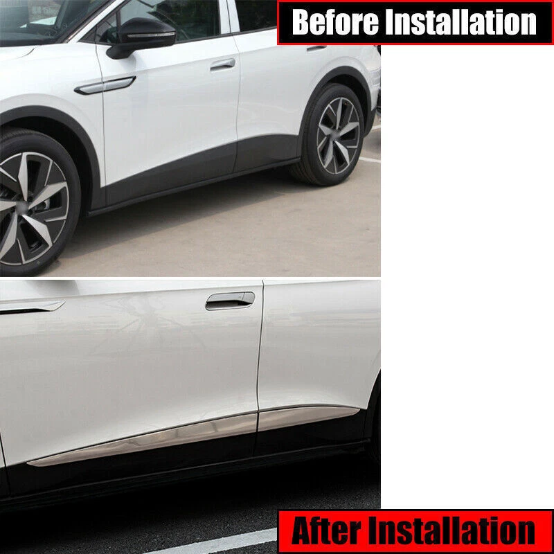 For Volkswagen ID.4 2021-2024 Silver Door Body Skirts Trim Panel Moulding Cover Fitment: Fit For Volkswagen ID.4 2021-2024 Specifications: Condition: 100% Brand New Color: As the picture shows Include: 4pcs Material: Made of high quality Stainless Steel material Made in ISO9001 factory, good quality and have been exported all over the world Product Introduction: ✔MATERIAL--100% brand new. Strict factory QC test, high quality guarantee. ✔APPLICATION--Provide a premium and stylish decor for your car, cover existing scratches and decorate your car. ✔FEATURES--Made of use superb surface treatment technology for protection, anti-corrosion, fading protection and years of trouble-free use. ✔DESIGN--Perfectly match with your original car. It can bring luxurious decoration upgrades to your car. Installation Instruction: 1. Easy installation, comes with self-adhesive tape, no any modification needed. 2. First check the area or location on the vehicle where this product needs to be installed. Please have the surface complete clean. 3. Peel off the cover and tape the item in the correct position of the vehicle. 4. You can also use a hairdryer to sufficiently heat the tape, this will allow the adhesive to better activate and bond to the corner. Notes: 1. Please check whether this item can fit on your car before purchasing. 2. If you have any questions, please feel free to contact us. Payment Delivery details Refunds and returns About us Contact us Payment We support all payment methods allowed by eBay Delivery details Under normal circumstances Once we have received cleared full payment, your items will be dispatched in 1-5 days. It normally takes : 7-14 business days for US, UK, Canada, Australia, Asian countries. 14-21 business days for Spain, German, Middle East countries. 18-25 business days for Russia, Brazil, Italy, France, European countries. 24-32 business days for South American countries. We send items by air mail to the buyer without track number. There maybe some delay due to flight, holiday, weather, local post, local natural disaster impact. if your shipment delays, we hope you can be patient, and at the same time contact us, we will try our best to help you. Import duties, taxes and charges are not included in the item price or shipping charges. These charges are the buyer's responsibility. Please check with your country's customs office to determine what these additional costs will be prior to bidding / buying. Refunds and returns Please contact us before leaving Netural or Negative feedback if you are not satisfied our service or products. Good communication is helpful for both of us to resolve any problems and issues. We are promising to try our best to provide the best service and 100% satisfaction for valuable buyer like you · All of the items are new. If it is not in new conditions, refund is offered. Otherwise, replacement can be offered for defective product. We will exchange or give the seller credit to buyer. · Please email us for all returns, and exchange shipping and handling charges are non-refundable. · Customers are responsible for return shippment fee except for wrong shipment or defective products. About us Here is a professional car interior and exterior modification, all kinds of pickup trucks and car accessories are available, welcome to buy, thank you for your support! Contact us Our working time is all day If you have any problem,pls feel free to contact us ,we will try our best to help you resolve it. If you satisfy with our service, your positive feedback will be appreciated. Your encouragement and support will always keep us forwards. Many thanks! Attachment Type Adhesive Brand Unbranded Color Silver Country/Region of Manufacture China Features Easy Installation, Heat Resistant, No Drilling Required, Self-Adhesive, Waterproof Finish Polished Chrome Manufacturer Part Number For Volkswagen ID.4 2021-2024 Manufacturer Warranty 1 Year Material Stainless Steel Number of Pieces 4 OE/OEM Part Number Fit For VW ID.4 ID4 2021-2024 Exterior Performance Part Yes Placement on Vehicle Left, Right Type Body Side Universal Fitment No Vintage Part No Interchange Part Number No