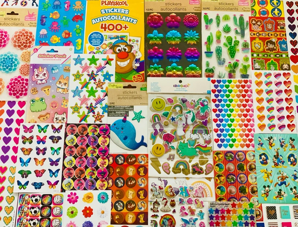 HUGE Mixed Sticker Lot | The Ultimate Kit | Qty. 555+ Stickers | High Quality Only! Fun Assortment of Puffy, Scrapbook, Cartoons, Bubble, Pop Up Stickers Packs For Everyone! You will receive 25+ Sticker Sheets of beautiful colorful assortment. The Pack will include 555+ Stickers overall! I have included a large variety of pictures of the assortment available. The pictures give you an idea of what you will be receiving. Please Note: You will not receive everything pictured. Please contact me with any special requests. This HUGE Variety of fun designs stickers can be used in parties, classroom, school and home, good for reward for students, potty training, adding inside a birthday card, game activities, entertaining toddlers, etc. Perfect Gifts for Kids & all Occasions: Can be given as a gift for kids, girls, boys, toddlers, teens, students, friends, and classmates, they will love it!