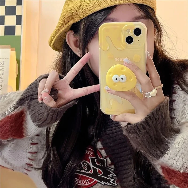 For iPhone 12 13 14 11 Pro max Plus Cheese Grip Tok bracket Soft Phone Case