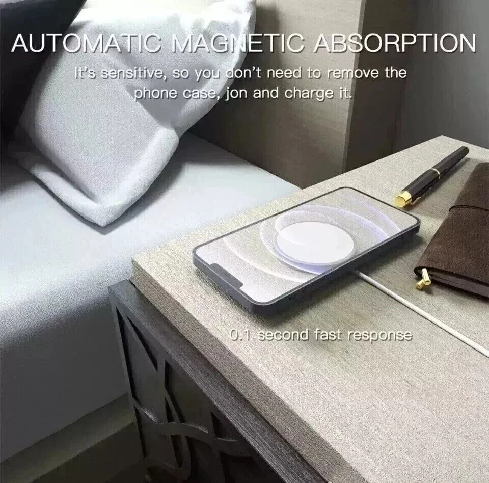 đ„ For iPhone 15 14 13 12 Pro Max Wireless Charger Magnetic Fast Charger -2Pcs For iPhone 15 / 15 Pro / 15 Plus / 15 Pro Max iPhone 14 / 14 Pro / 14 Plus / 14 Pro Max iPhone 13 / 13 Pro / 13 Pro Max / 13 Mini iPhone 12 / 12 Pro / 12 Pro Max / 12 Mini iPhone 11 / 11 Pro / 11 Pro Max iPhone X / XR / XS Max Magnetic Wireless Charging Pad Quantity: 2 pcs Features: ăCompatible with iPhone X/11/12/13/14/15 SeriesăMagsafe Magnetic wireless charger provides fast and efficient wireless charging for your devices. Compatible with iPhone 15 Pro Max/15 Plus/15 Pro/15 iPhone 14 Pro Max/14 Plus/14 Pro/14/13 Pro Max/13 Pro/13/13 mini/12 Pro Max/12 Pro/12/12 mini/ iPhone 11/11 Pro/ 11 Pro Max/ iPhone X/XR/XS/XS Max. ăEfficient Magnetic AlignmentăPowerful magnetic absorption, perfectly aligned with your phone. Whether you are working, playing games, watching videos, listening to music, or chatting with your family and friends, free your hands and make charging easier. ăEasy charging at nightăIn the dark of the bedroom, you do not worry about how difficult to find the charging port. Even put down your iPhone X/11/12/13/14/15 Series on the wireless charging pad casually , it will be automatically aligned charging. magnetic wireless charger will give you a more convenient and more thoughtful using experience. ăMetal & Portable DesignăThe high-quality metal material exhibits a unique luster, avoids scratches or fingerprints, not only keep perfect appearance, but also more durable. Only 0.23 inch thin, just like the smallest lightest wireless mag safe charger with the 3ft long cable. Free up more space, it can be put into backpacks, pockets or bags. ăType-C PortăThis magnetic charging pad has one Type-C port Compatible with the regular wall charger you own, so you donât have to worry too much. You can choose a suitable wall charger for use. NOTE: Please use 18W, 20W or higher power adapters. [NO WALL CHARGER INCLUDED] Contact uyida-elecstore We appreciate you leave 5 star positive feedback for us upon receipt of your item, if your item hasn't arrived or isn't as described and want to leave a negative feedback, contact us first. Give us a chance to make things right for you, you can be contacted at any time through the eBay messaging system.We will respond to you within 24 hours and do our best to help you out!because Negative Feedback doesn't solve problems. Thank you very much~