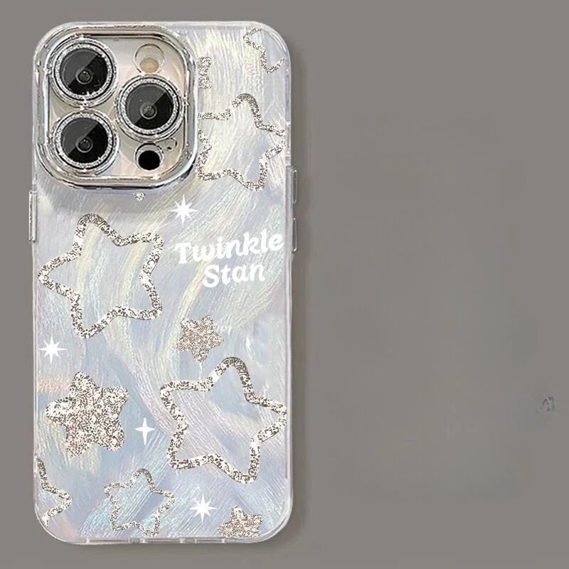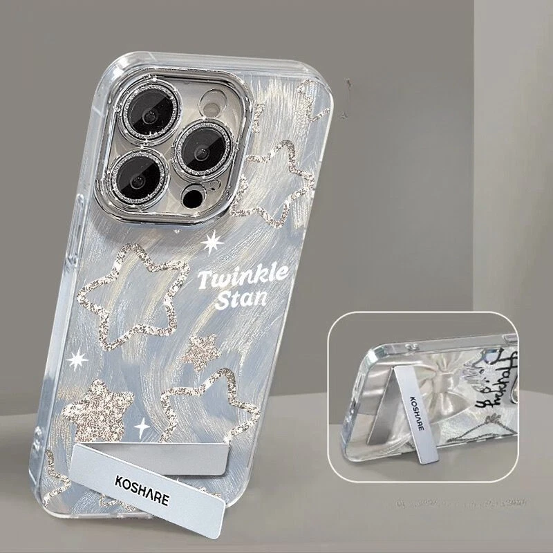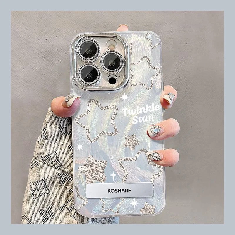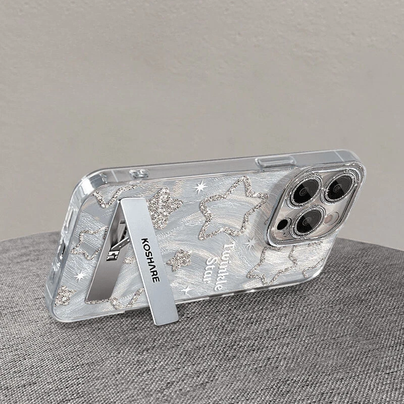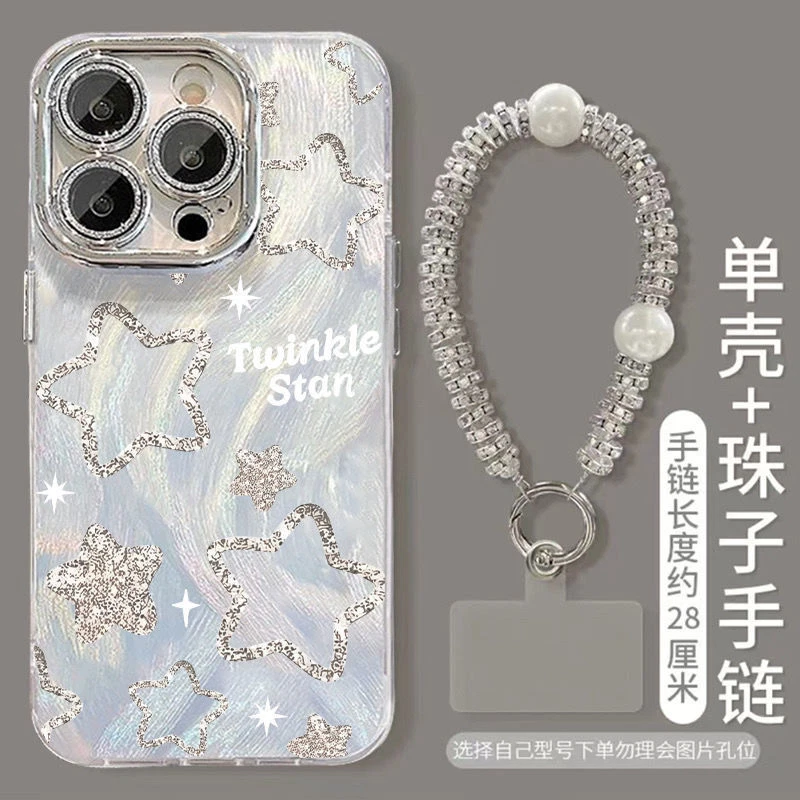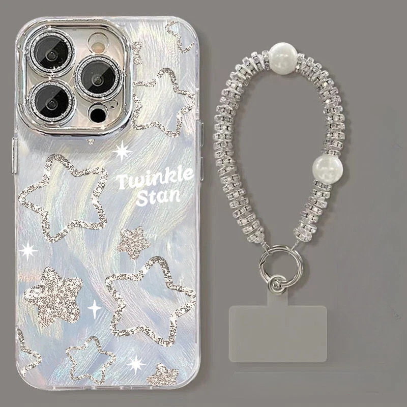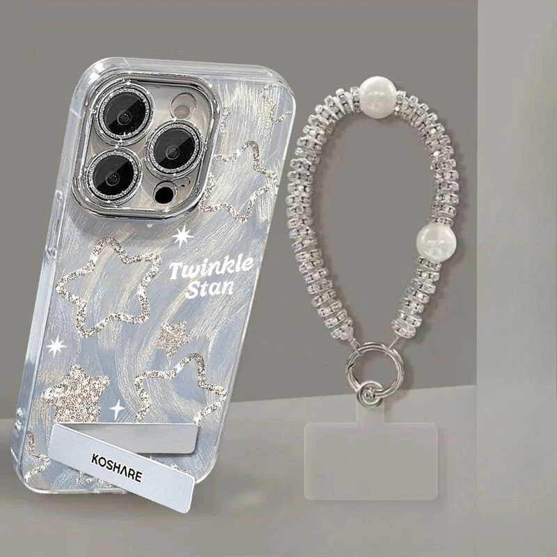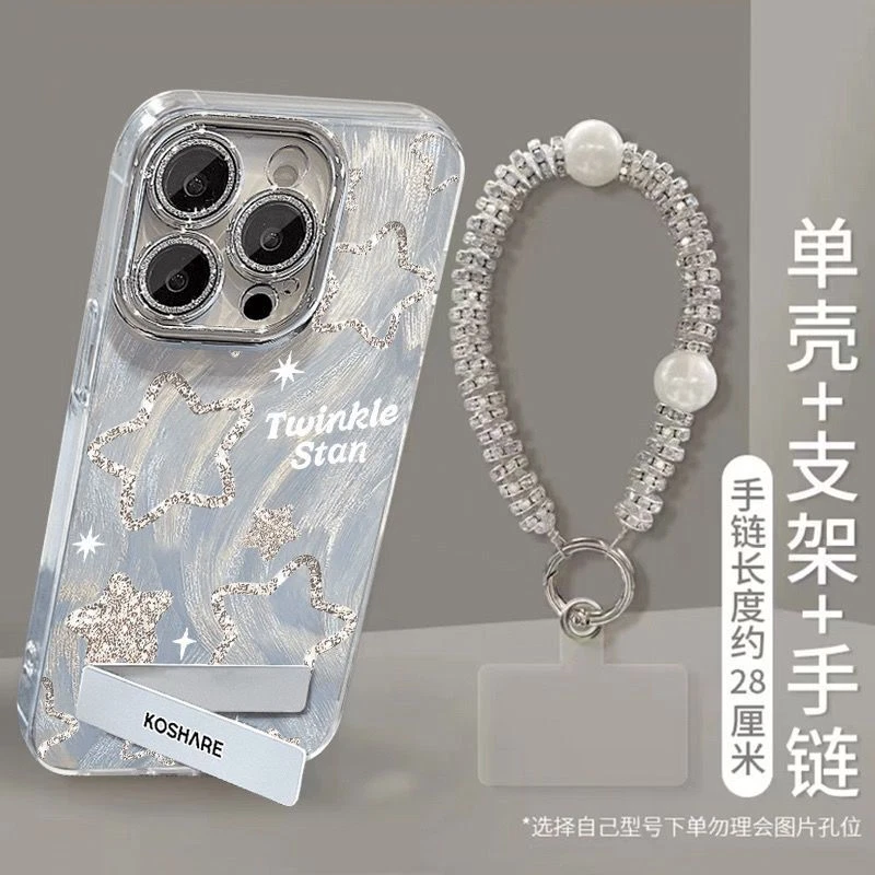 For iPhone 16 15 14 13 12 11 Pro Max Glitter star holder bracelet phone case