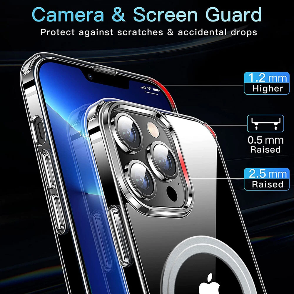 For iPhone 16 Pro Max 15 14 13 Crystal Clear Mag Safe Magnetic Case Rugged Cover Compatibility: This phone case only compatible with iPhone 16 Pro Max 15 14 13,crystal clear case compatible with MagSafe. Compatible with Mag Safe: This case built -in magnetic ring, compatible with magsafe wireless charger, and also wireless charging compatible, fits perfectly. Crystal Clear: Made of premium soft crystal clear hard PC & TPU cover bumper frame, slim thin and fit snug, fingerprint, slip, yellow and scratch resistant. Material and Protection: The phone case is made of high quality material, it supports heavy duty 4 corners shockproof protection, pass military grade drop tested, anti-fall/anti-scratch/anti-bumps. Comfortable Gripping: Slim fit, crystal clear and stripe design giving you great gripping and smooth touching feeling, bring you an excellent touching feeling experience.
