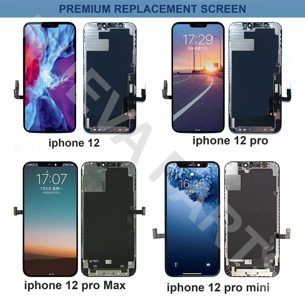 Brand New Screen Replacement For iPhones Compatiable: iPhone X/XS/XR/XS Max/11/11 Pro/11 Pro Max/12 Mini/12/12 Pro/12 Pro Max/13 Color: For All Replace your broken or damaged to the new screen easily. Tested One by One to make sure 100% working In stock and ship same business day in Austin TX